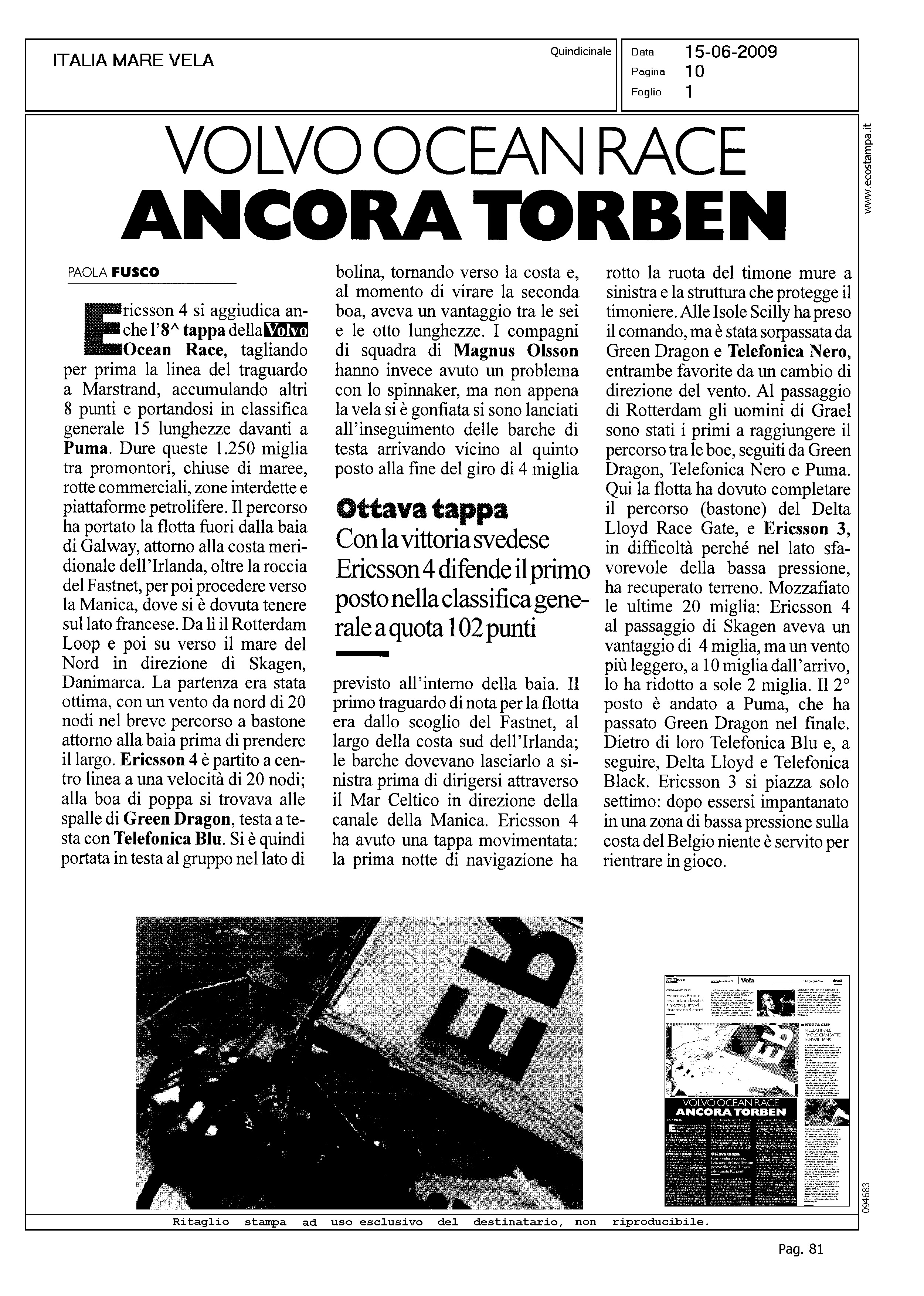 Author: FUSCO, PAOLALine: Corporate Model: Corporate Subject: Volvo Ocean Race Title: VOLVO OCEAN RACE ANCORA TORBENHighlight: