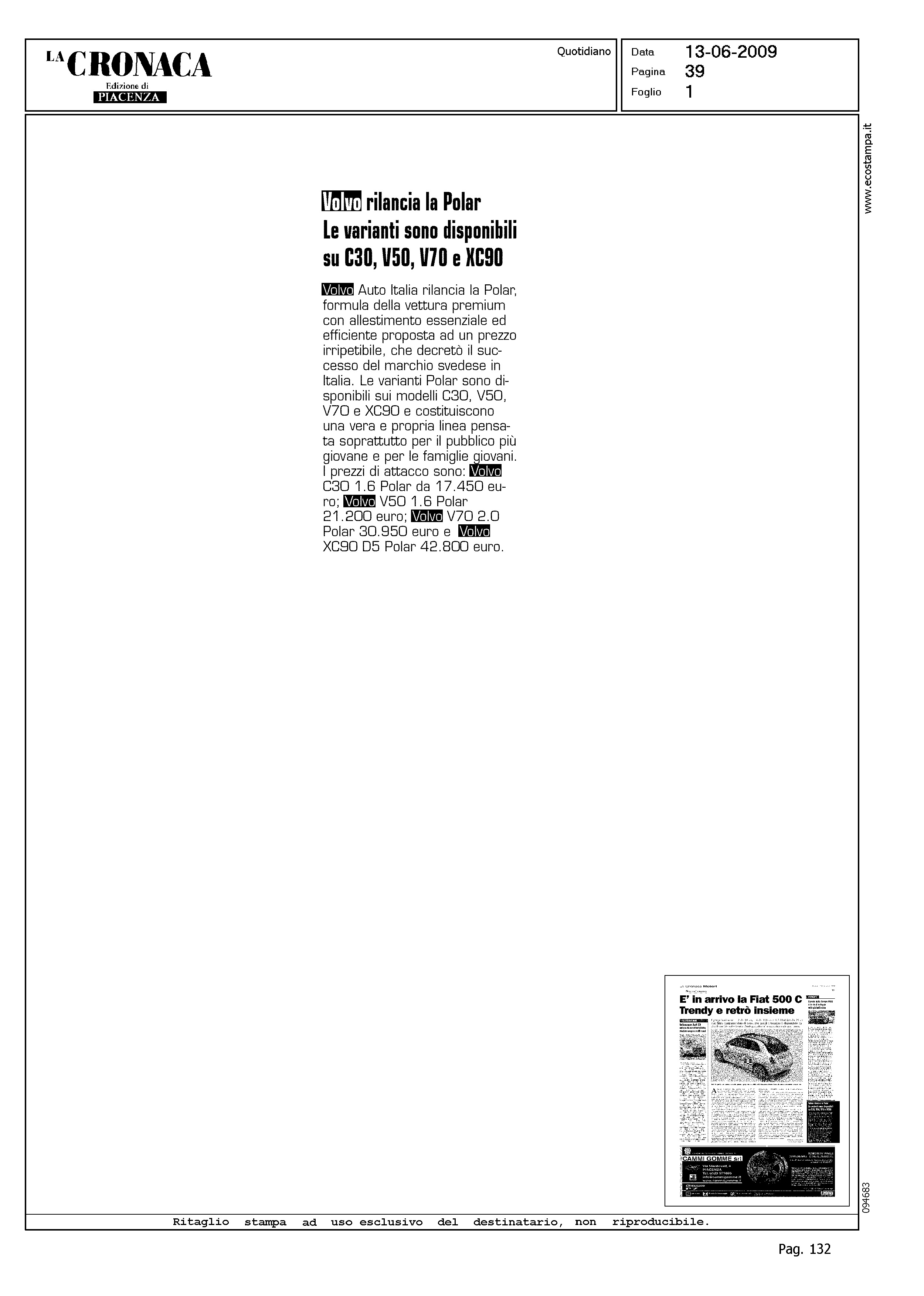 Author: Line: Corporate Model: Corporate Subject: - Title: VOLVO RILANCIA LA POLAR - LE VARIANTI SONO DISPONIBILI SU C30, V50, V70 E XC90Highlight: