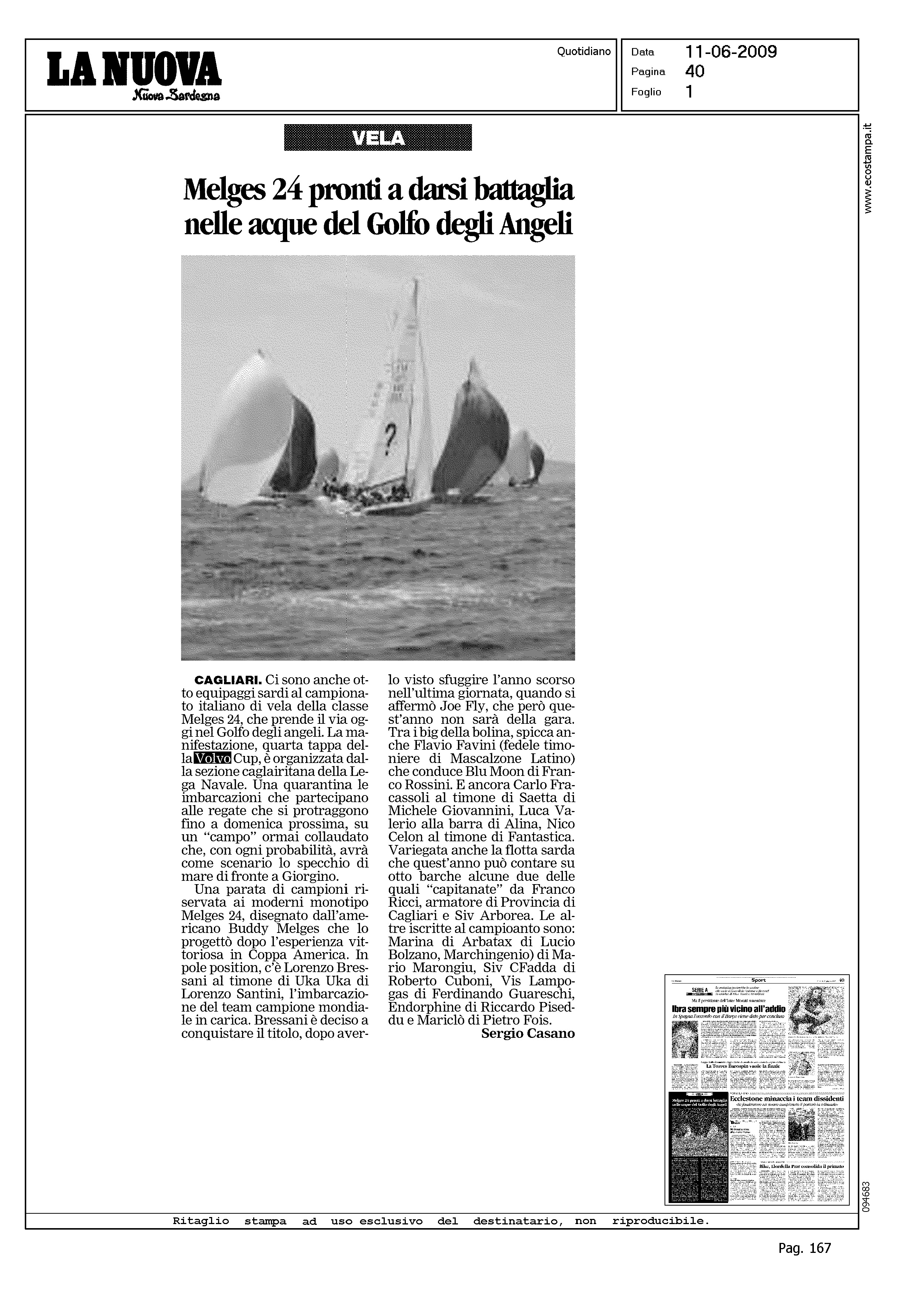 Author: CASANO, SERGIOLine: Corporate Model: Corporate Subject: Volvo Cup Title: MELGES 24 PRONTI A DARSI BATTAGLIA NELLE ACQUE DEL GOLFO DEGLI ANGELIHighlight: