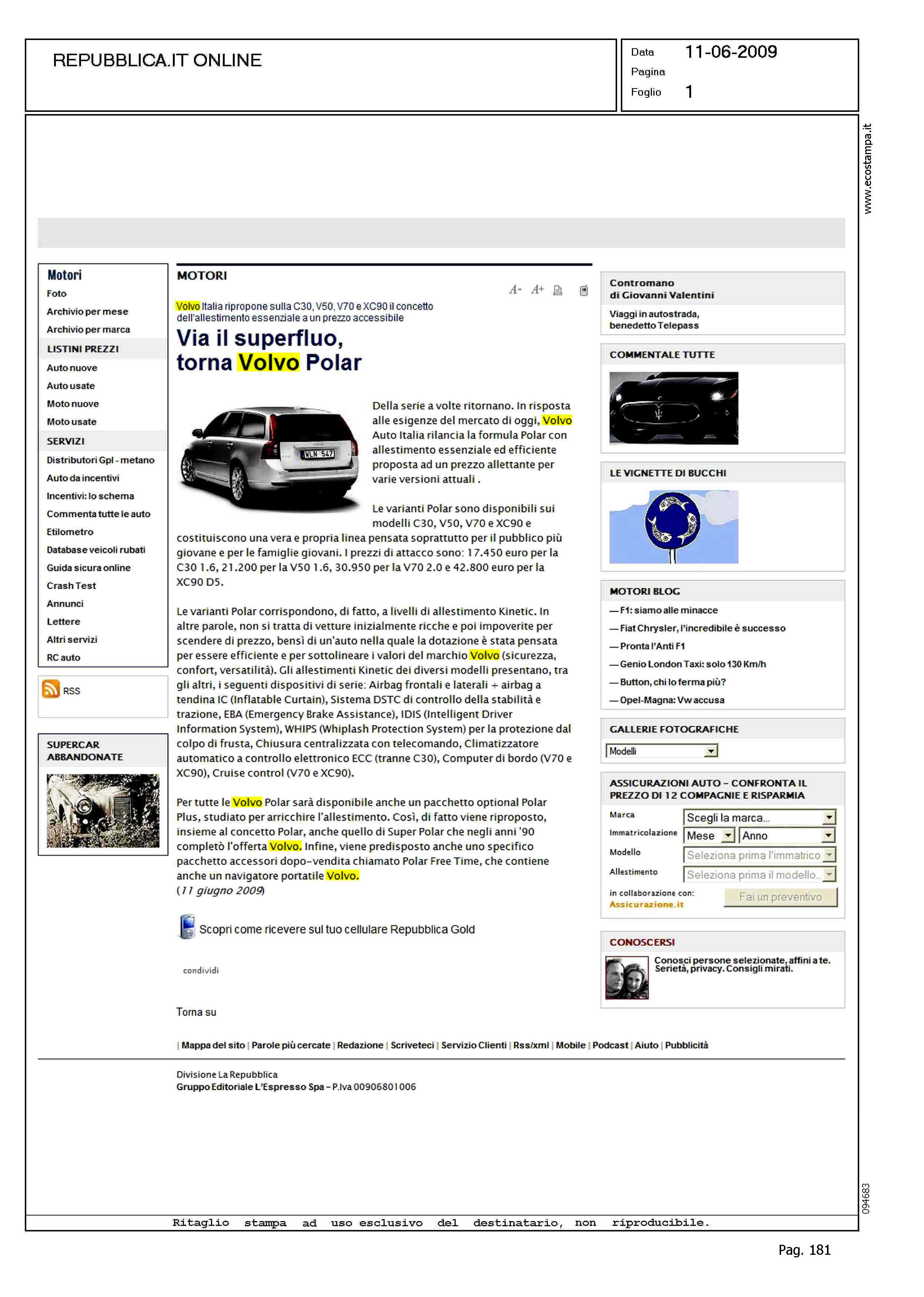 Author: Line: Corporate Model: Corporate Subject: - Title: VIA IL SUPERFLUO, TORNA VOLVO POLARHighlight: