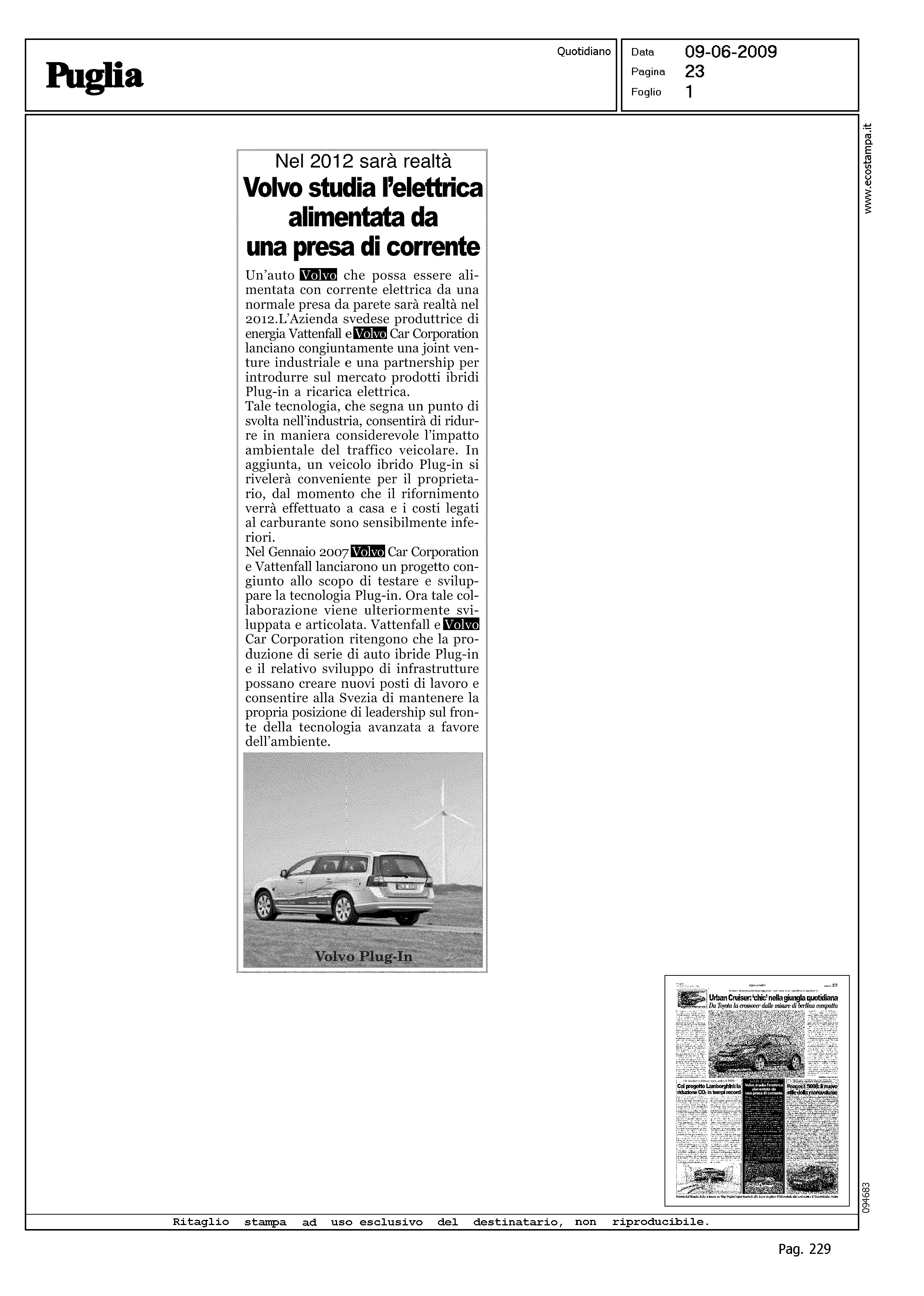 Author: Line: Corporate Model: Corporate Subject: - Title: VOLVO STUDIA L'ELETTRICA ALIMENTATA DA UNA PRESA DI CORRENTEHighlight:
