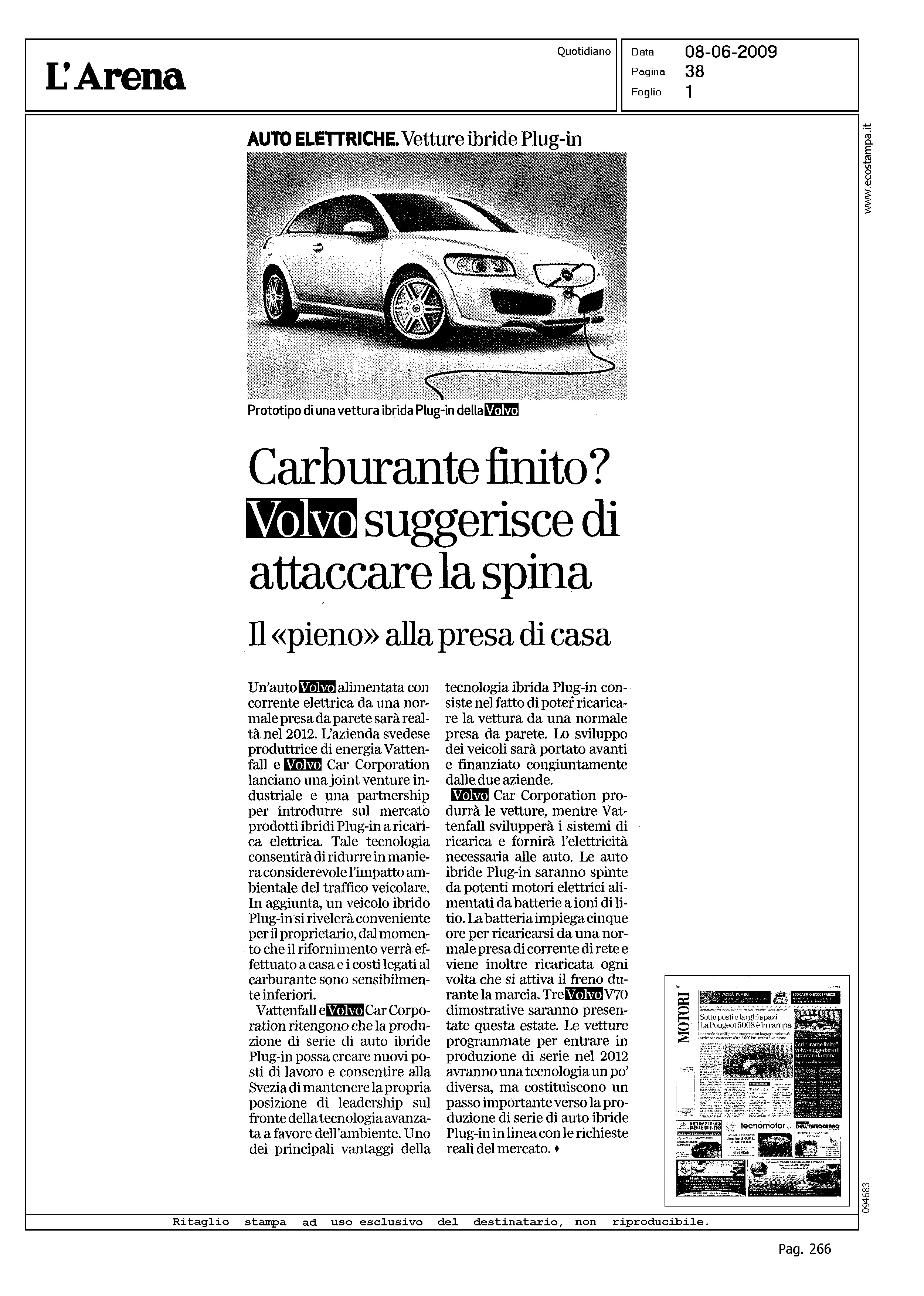 Author: Line: Corporate Model: Volvo C30 Subject: C30 ReCharge Title: CARBURANTE FINITO? VOLVO SUGGERISCE DI ATTACCARE LA SPINAHighlight: