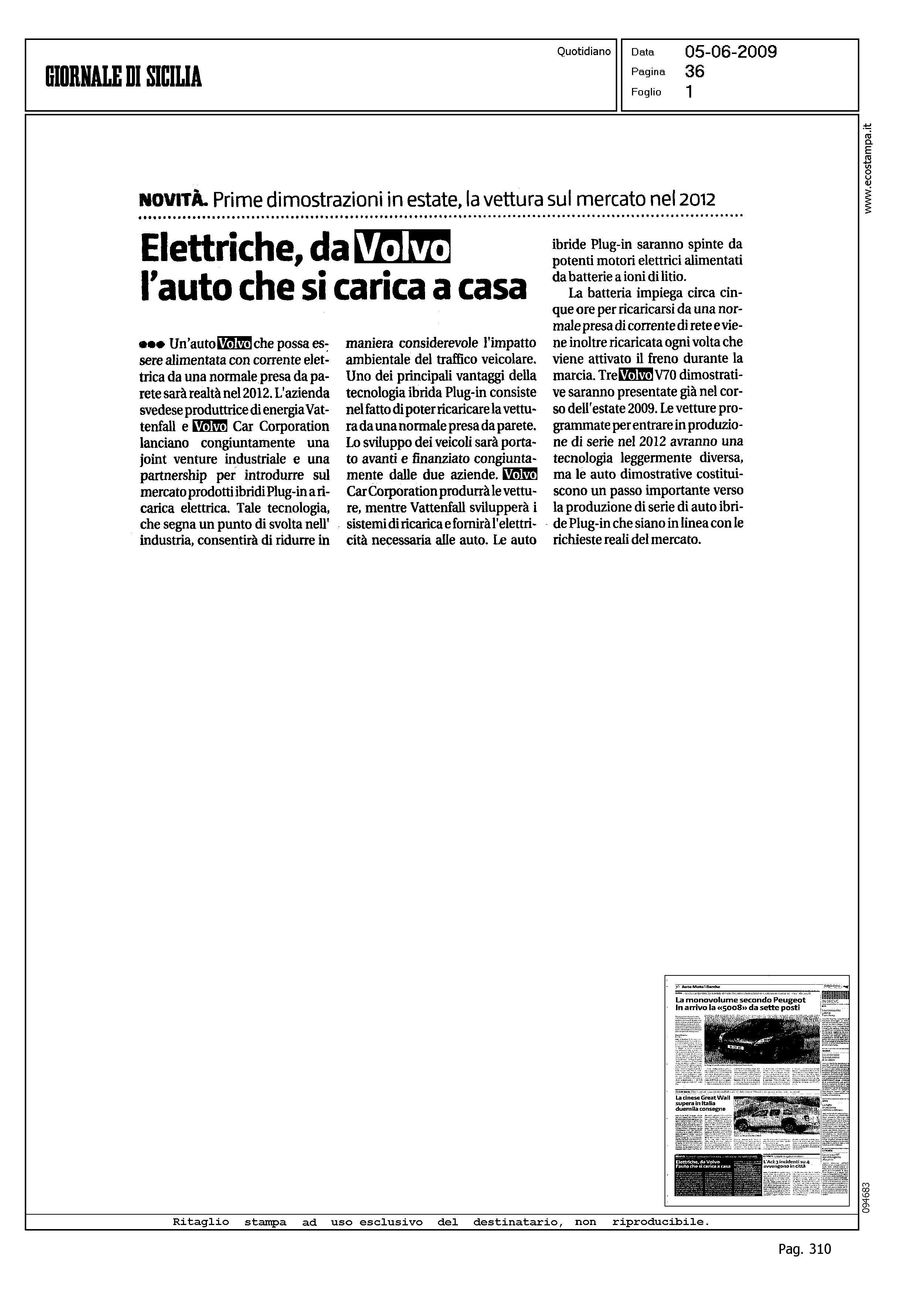 Author: Line: Corporate Model: Corporate Subject: - Title: ELETTRICHE, DA VOLVO L'AUTO CHE SI CARICA A CASAHighlight: