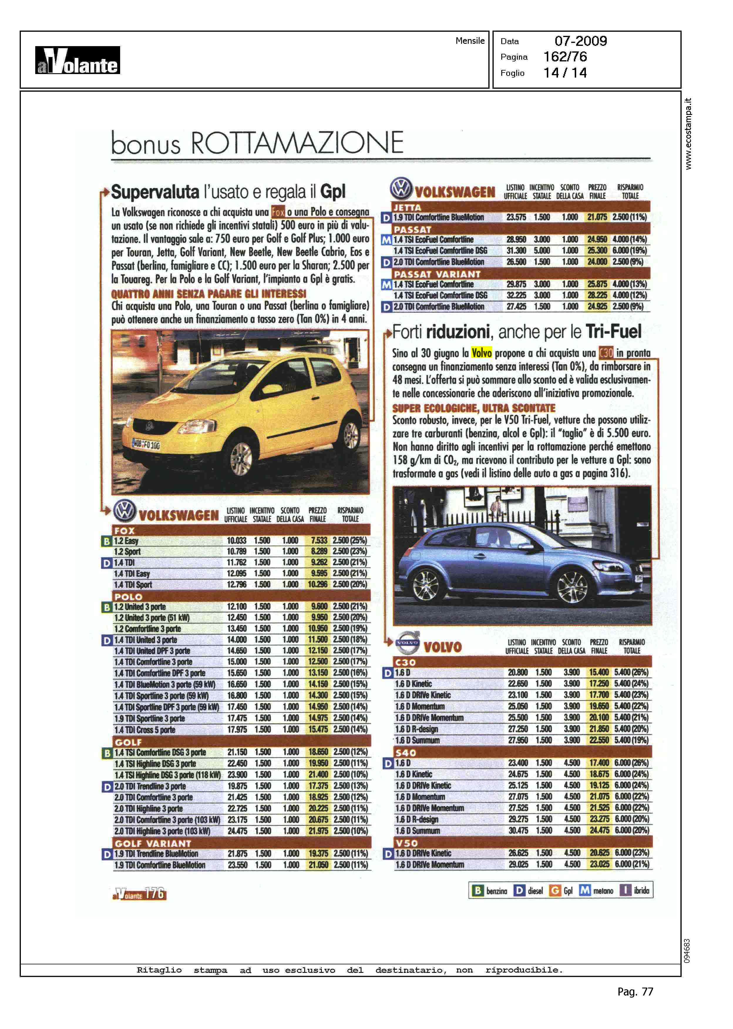 Author: Line: Corporate Model: Corporate Subject: V50 Tri-Fuel Title: CHI DISTRUGGE FA UN AFFARE - FORTI RIDUZIONI, ANCHE PER LE TRI-FUELHighlight: