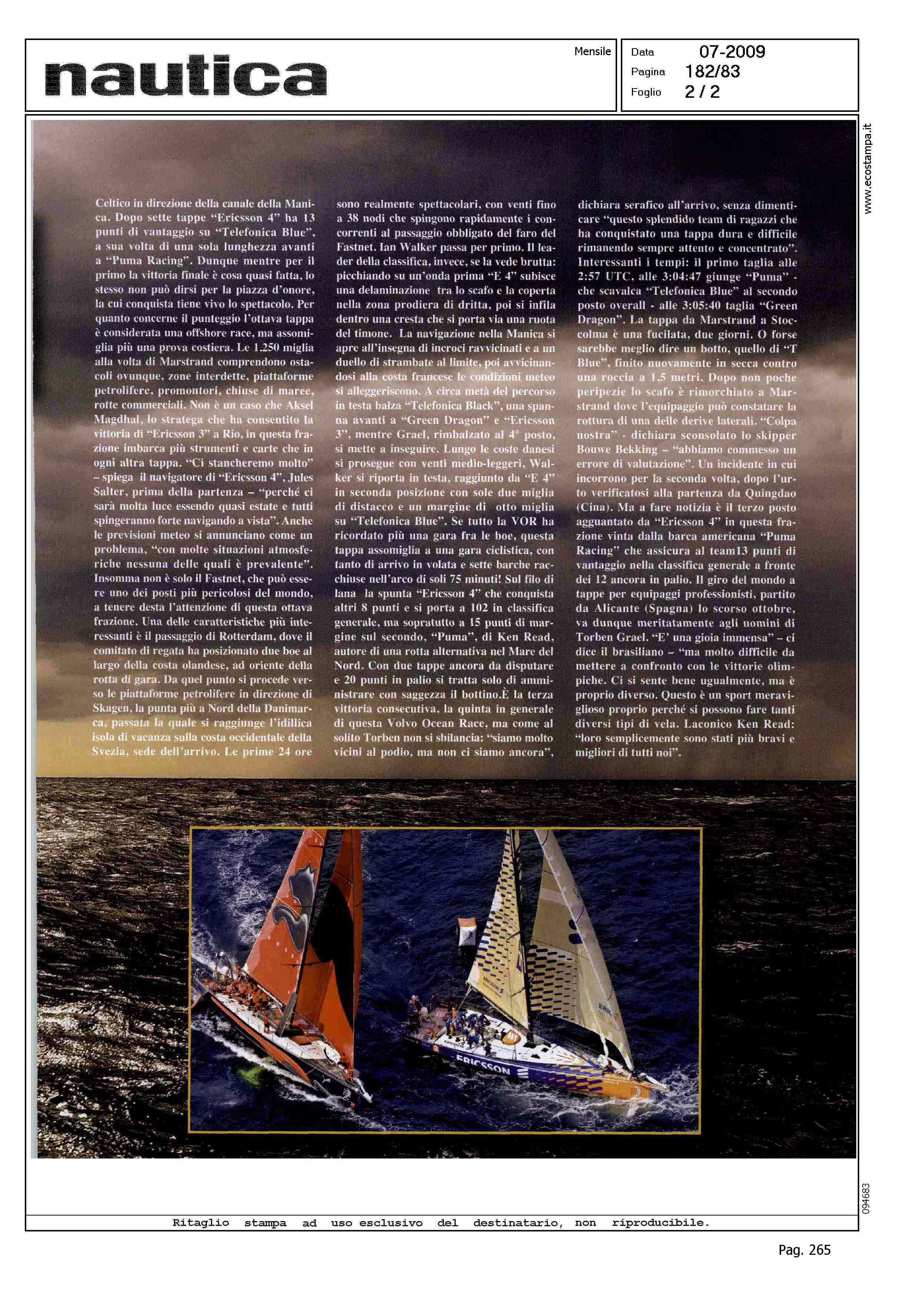 Author: NEGLIA, ROBERTOLine: Corporate Model: Corporate Subject: Volvo Ocean Race Title: GRAEL STRAVINCE LA VOLVO OCEAN RACE. IN-CONTINENTEHighlight: