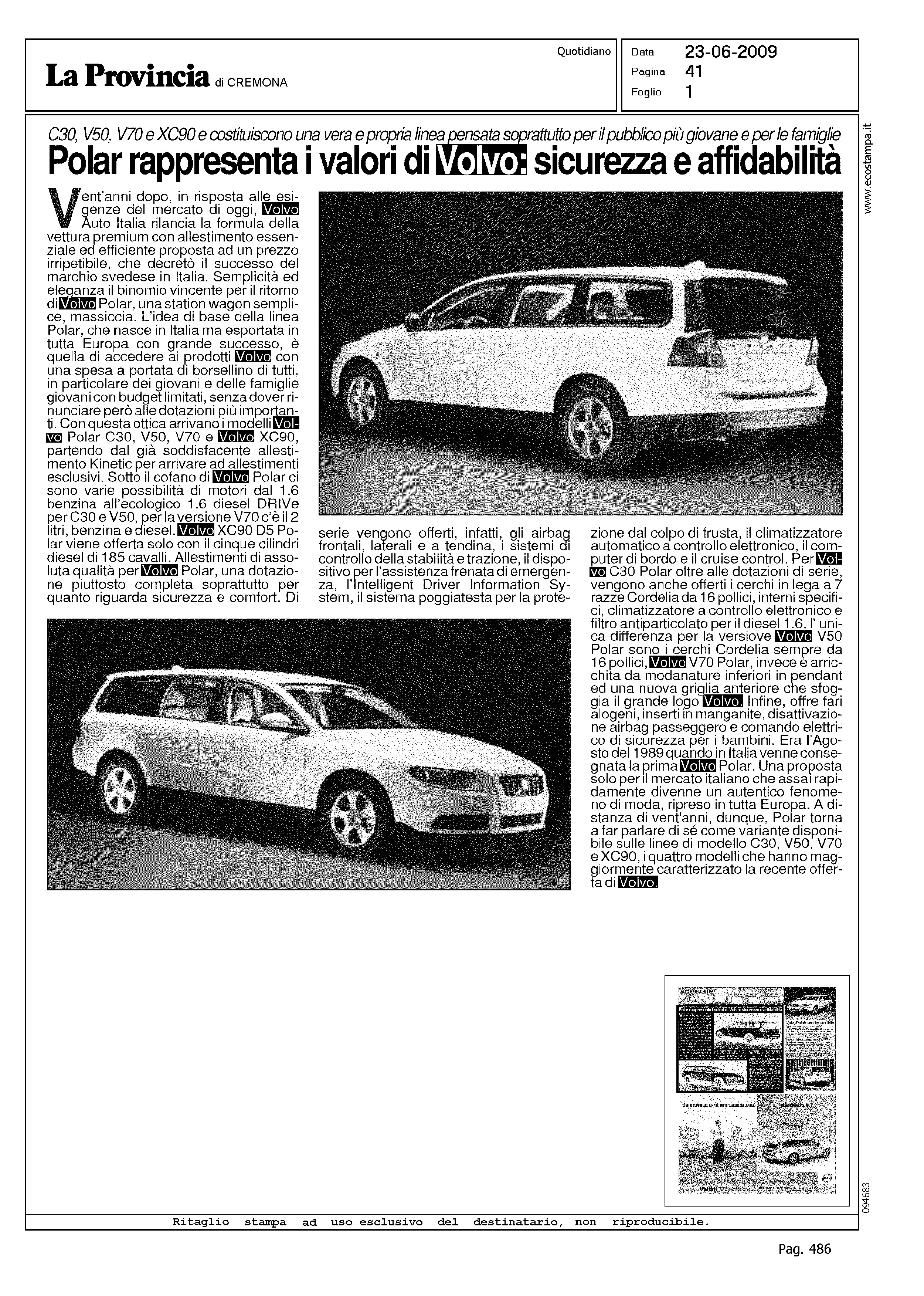 Author: Line: Corporate Model: Corporate Subject: - Title: POLAR RAPPRESENTA I VALORI DI VOLVO: SICUREZZA E AFFIDABILITA'Highlight: