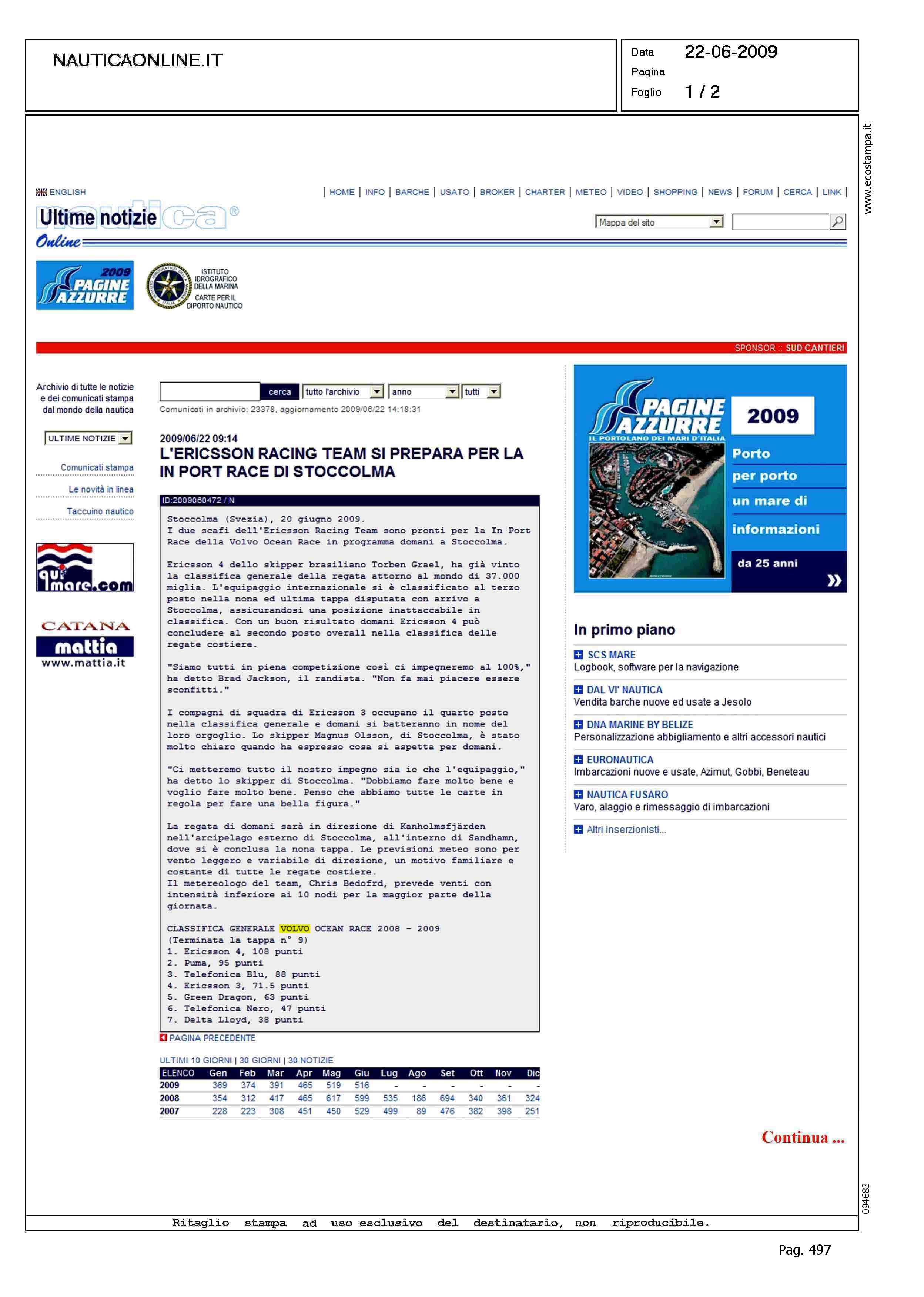 Author: Line: Corporate Model: Corporate Subject: Volvo Ocean Race Title: L'ERICSSON RACING TEAM SI PREPARA PER LA IN PORT RACE DI STOCCOLMAHighlight: