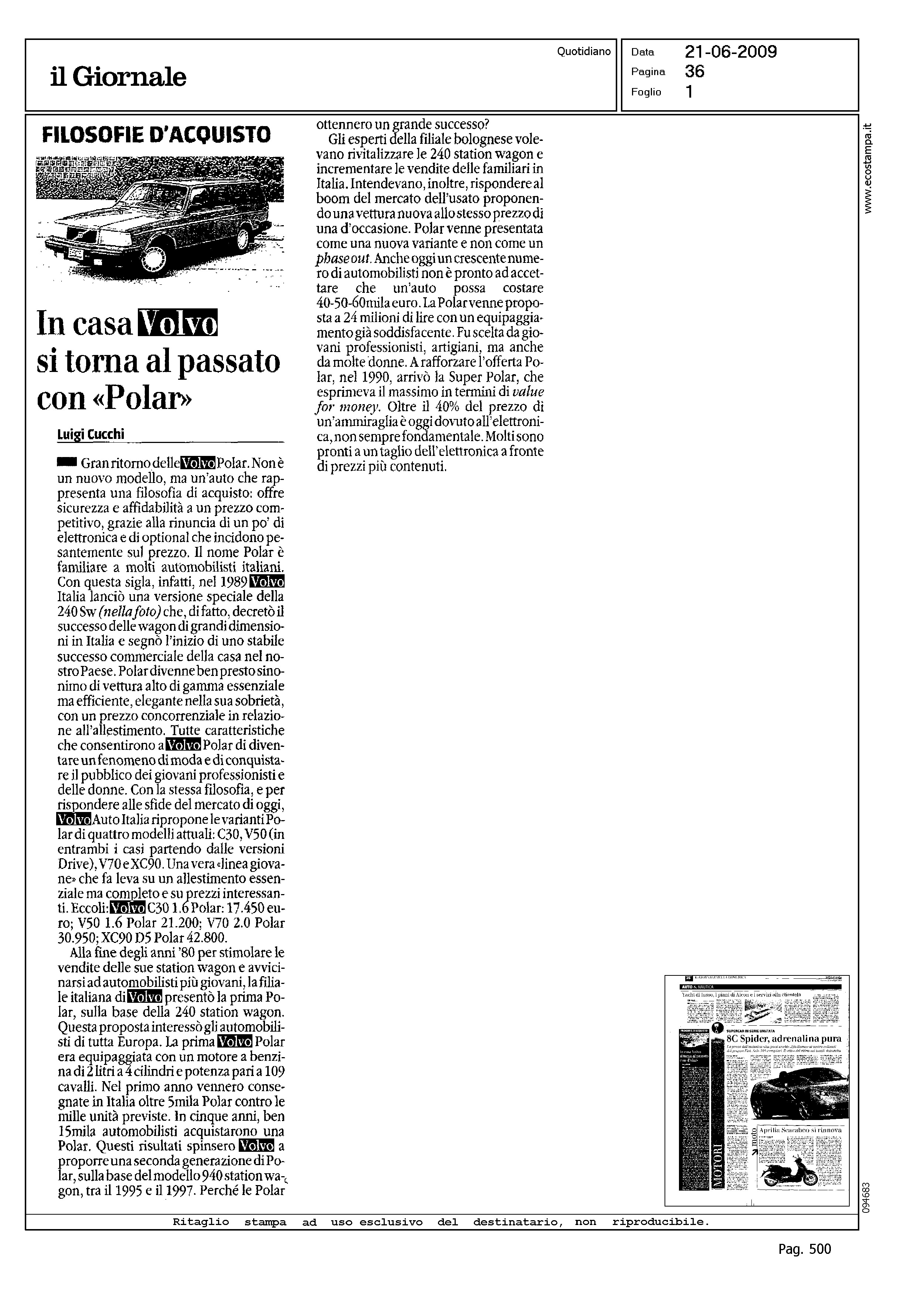 Author: CUCCHI, LUIGILine: Corporate Model: Corporate Subject: - Title: IN CASA VOLVO SI TORNA AL PASSATO CON 'POLAR'Highlight: