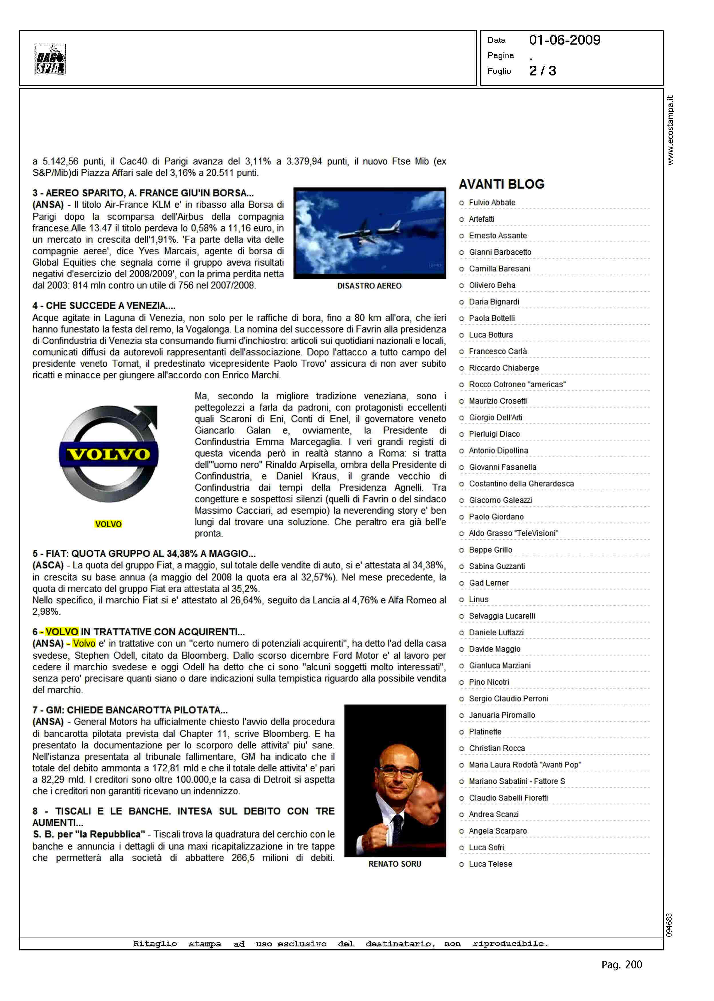 Author: Line: Corporate Model: Corporate Subject: - Title: VOLVO IN TRATTATIVE CON ACQUIRENTI...Highlight: