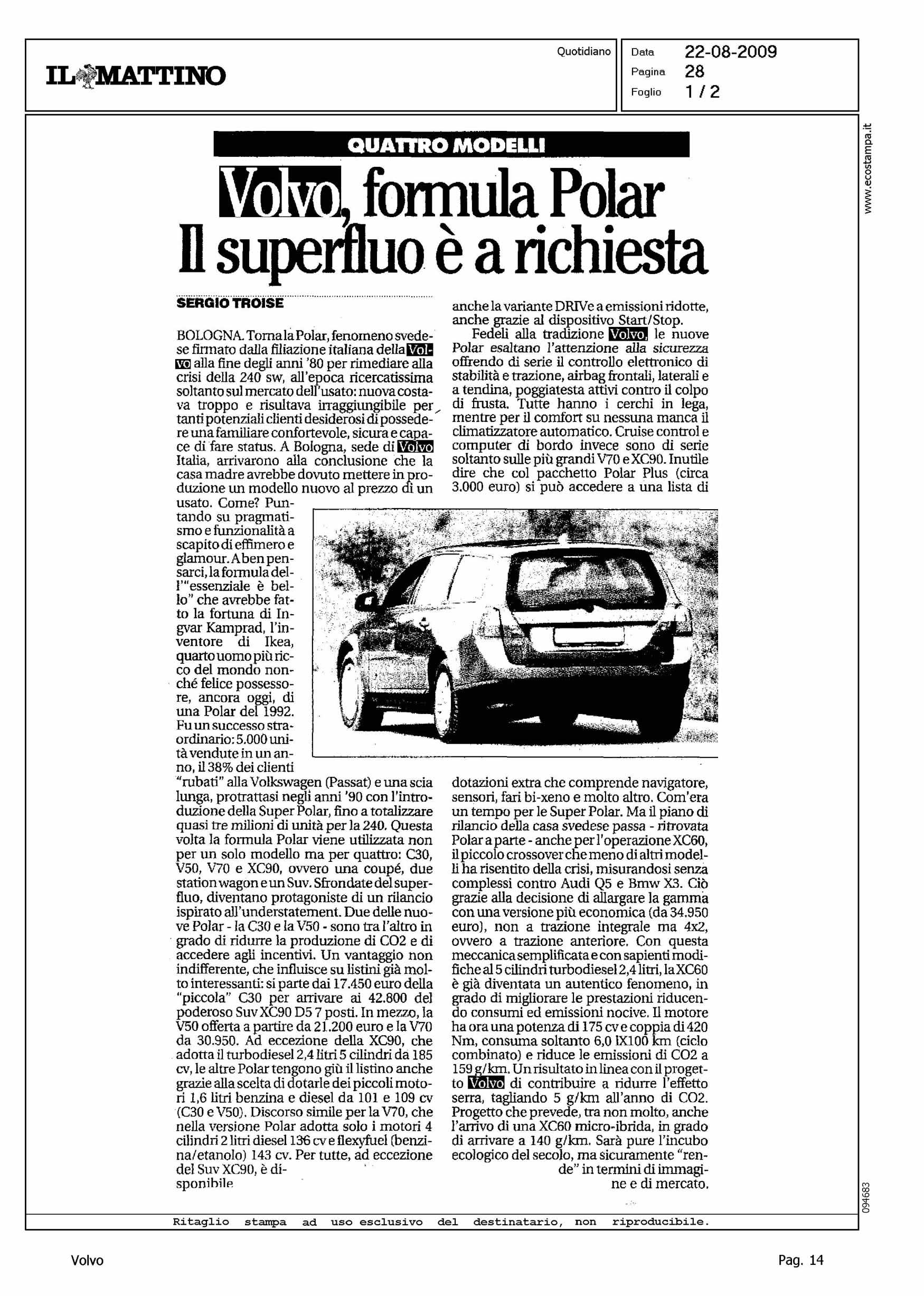 Author: TROISE, SERGIOLine: Corporate Model: Volvo V70 Subject: - Title: VOLVO, FORMULA POLAR IL SUPERFLUO E' A RICHIESTAHighlight: