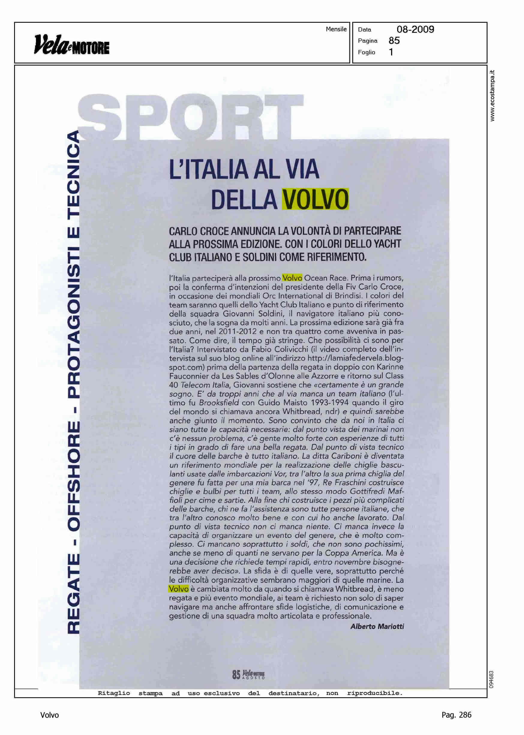 Author: Line: Corporate Model: Subject: Volvo Ocean Race Title: L'ITALIA AL VIA DELLA VOLVOHighlight: