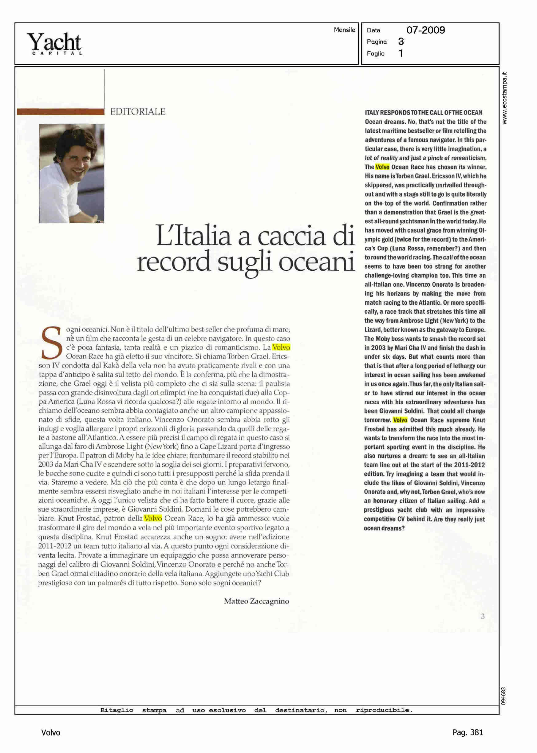 Author: ZACCAGNINO, MATTEOLine: Corporate Model: Corporate Subject: Volvo Ocean Race Title: L'ITALIA A CACCIA DI RECORD SUGLI OCEANIHighlight: