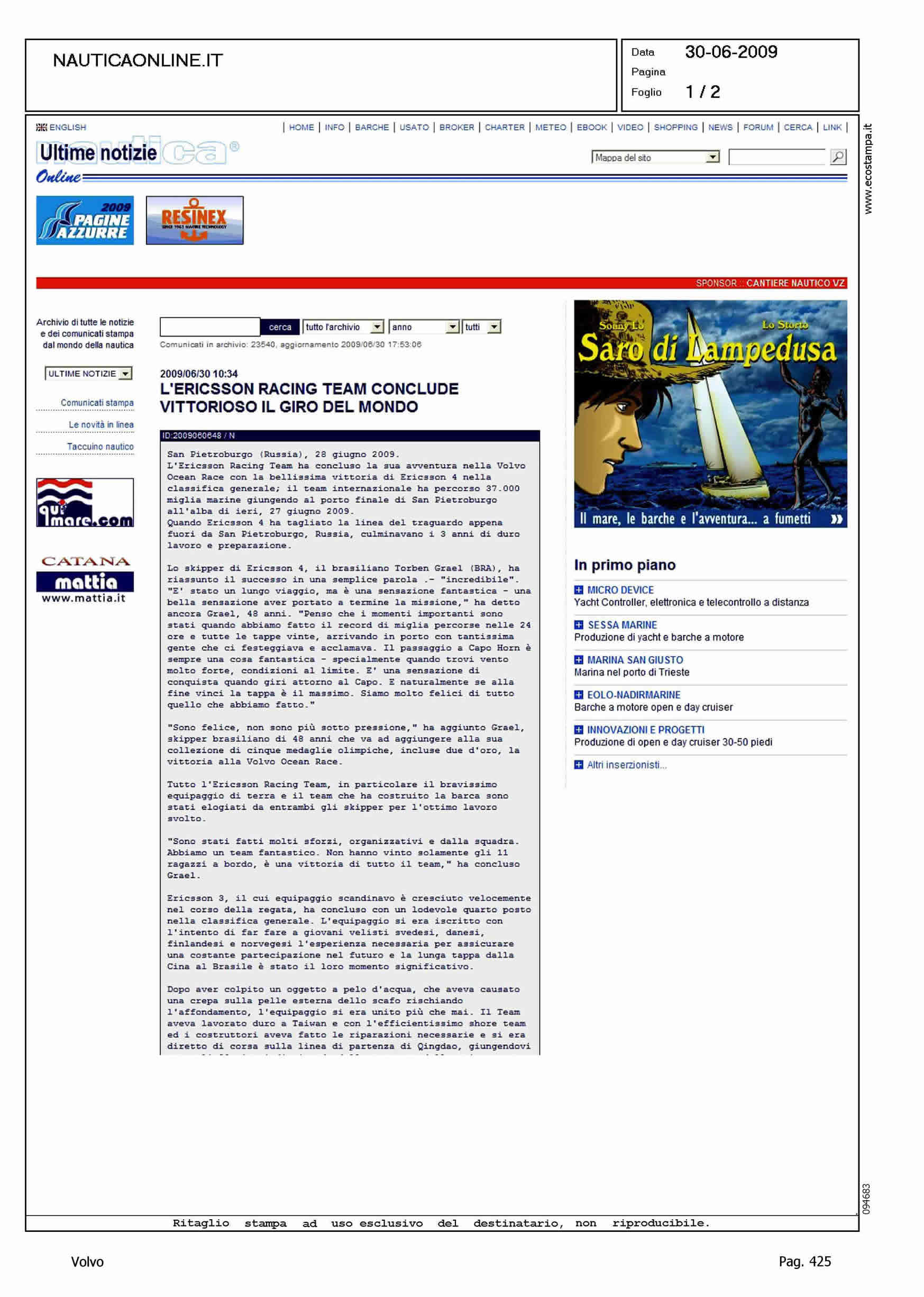 Author: Line: Corporate Model: Corporate Subject: Volvo Ocean Race Title: L'ERICSSON RACING TEAM VINCE LA VOLVO OCEAN RACEHighlight: