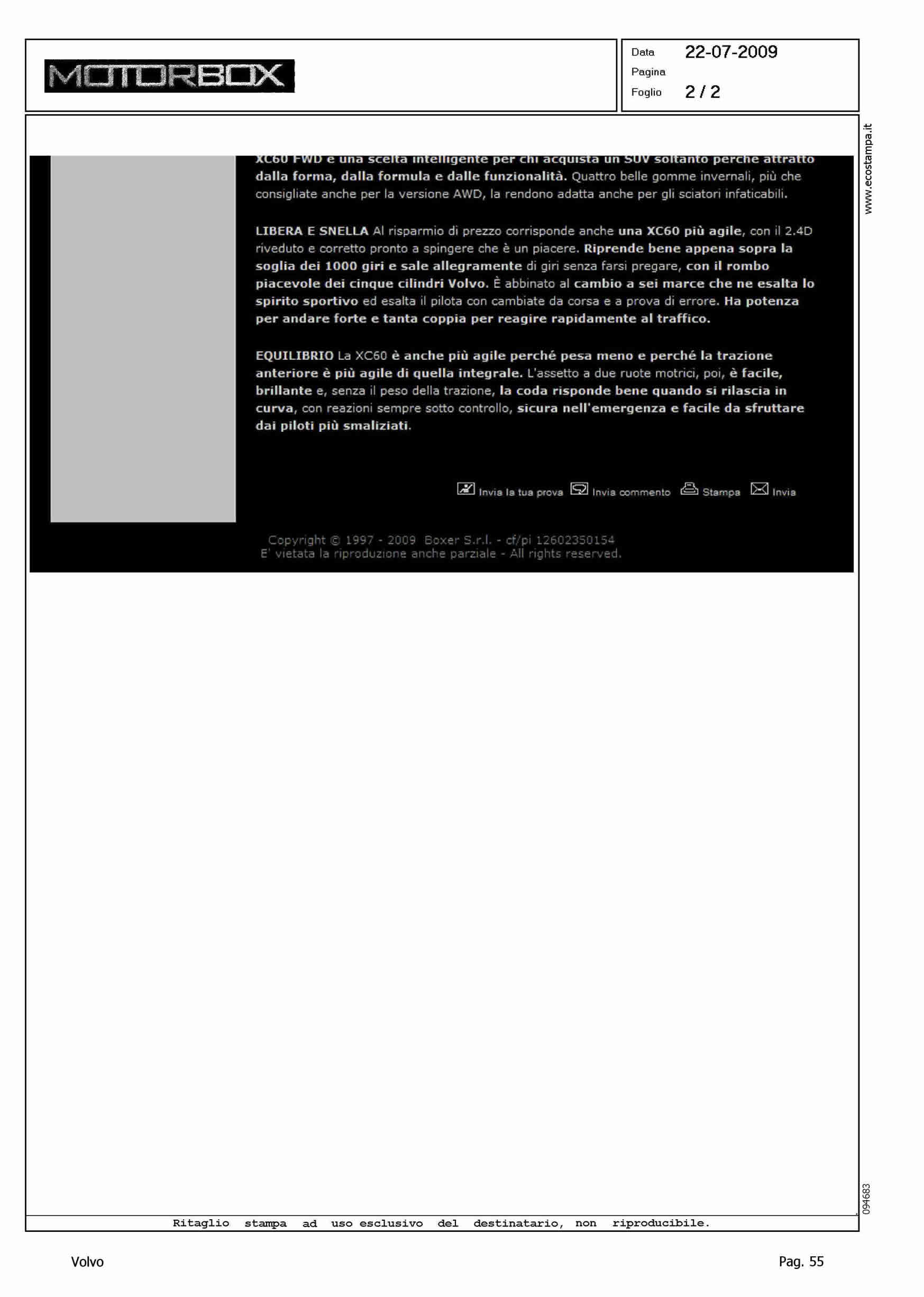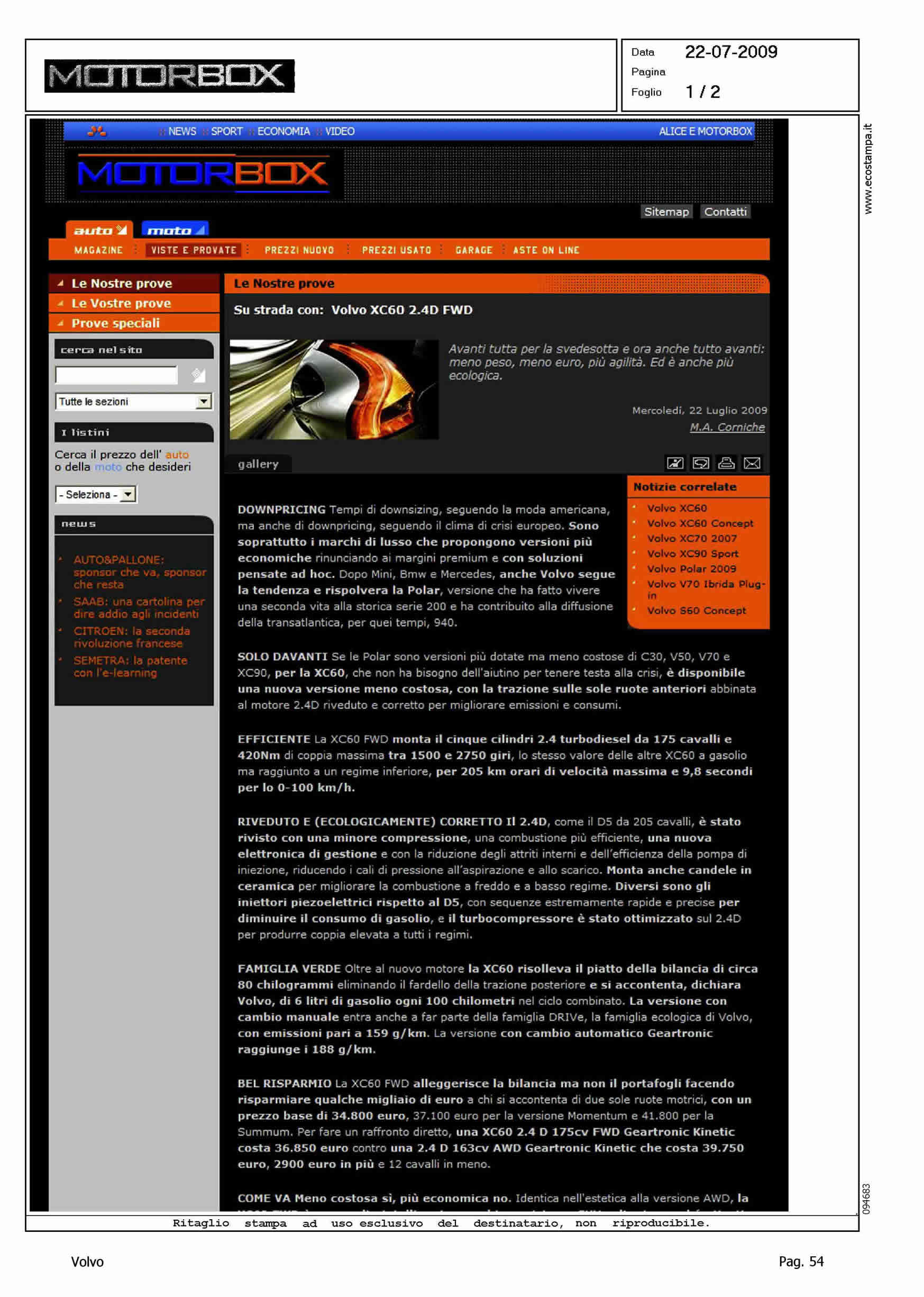 Author: CORNICCHIA, MARIOLine: XC60 Model: Subject: - Title: LE NOSTRE PROVE - SU STRADA CON: VOLVO XC60 2.4FWDHighlight: