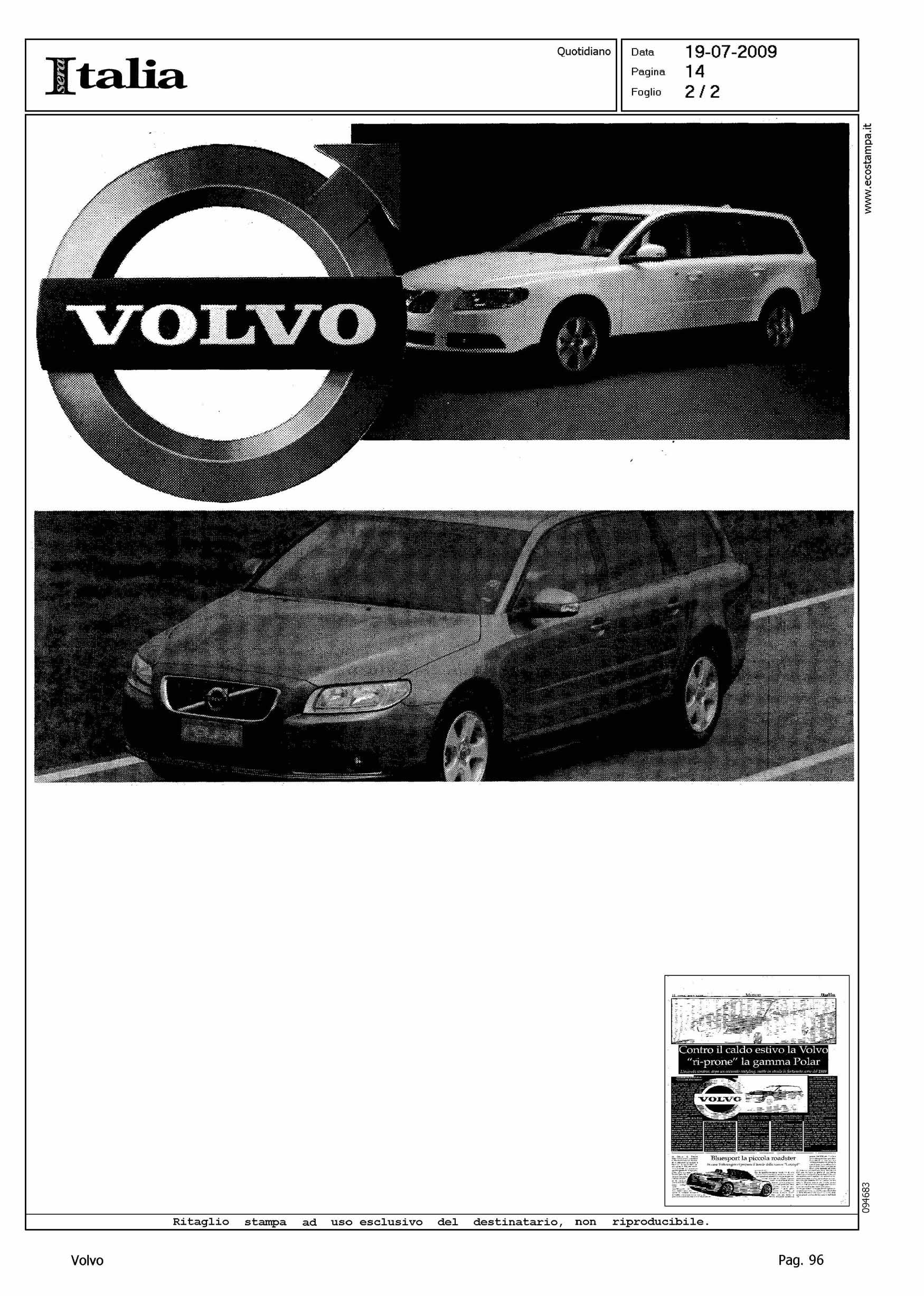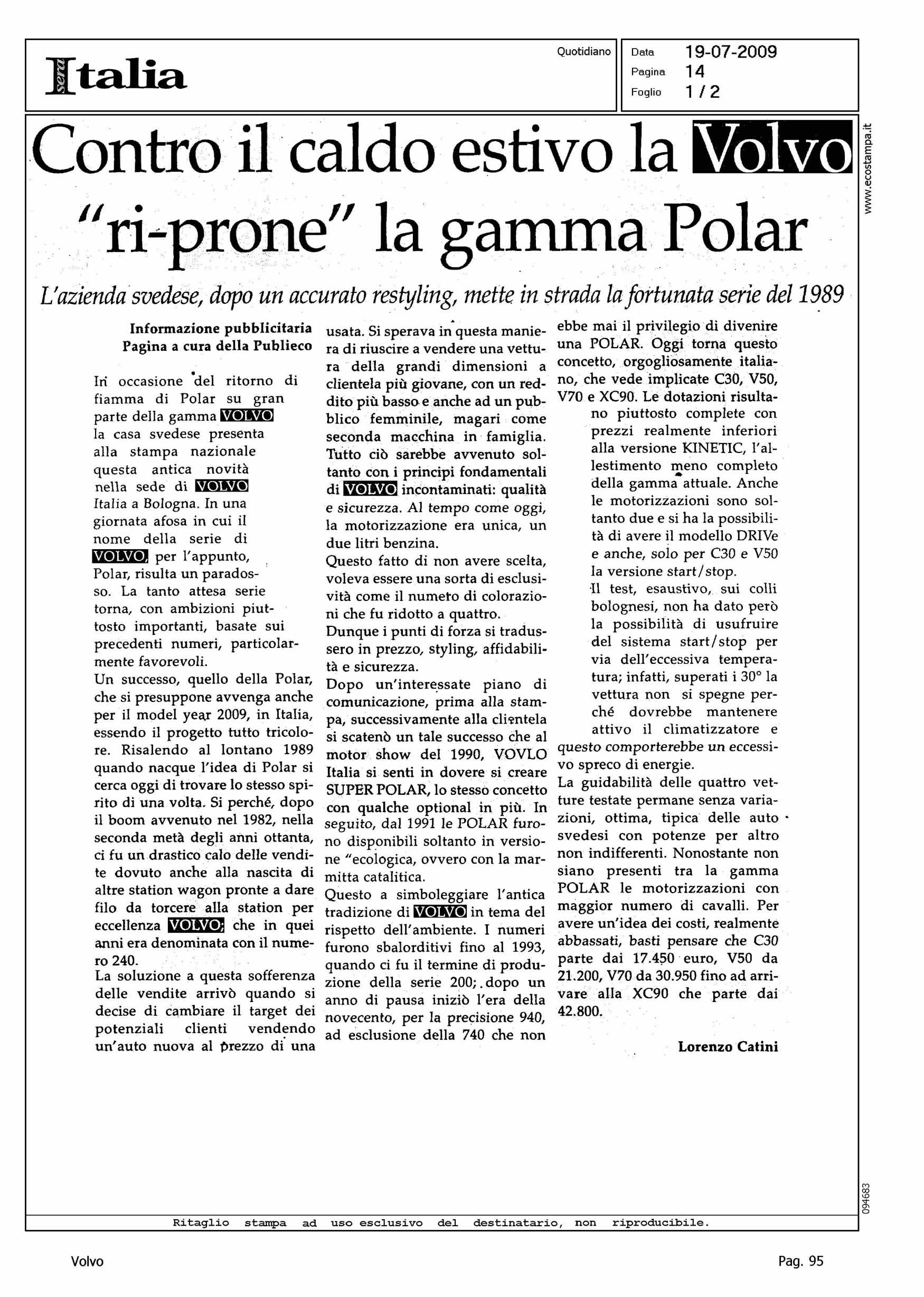 Author: CATINI, LORENZOLine: Corporate Model: Corporate Subject: - Title: CONTRO IL CALDO ESTIVO LA VOLVO ''RI-PRONE'' LA GAMMA POLARHighlight: