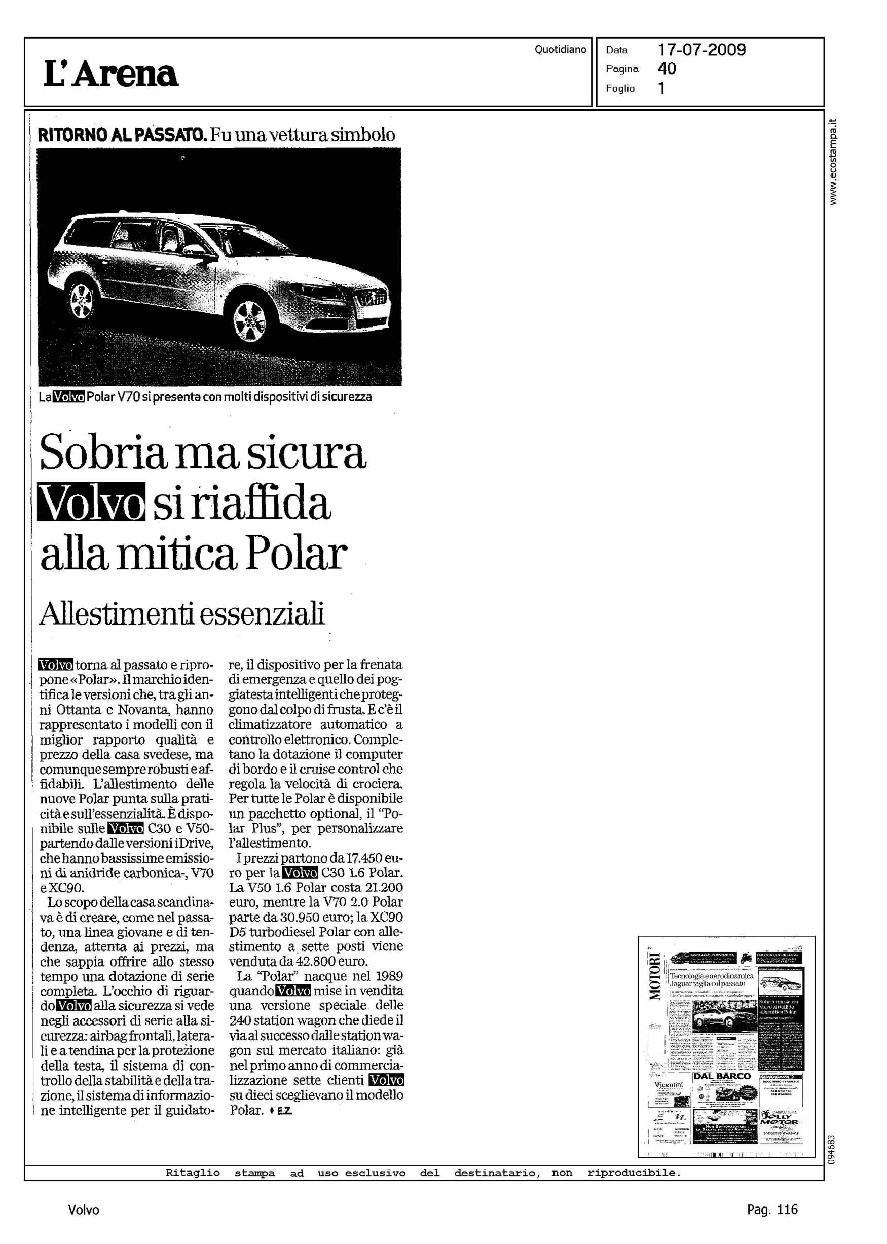 Author: Line: Corporate Model: Corporate Subject: - Title: SOBRIA MA SICURA - VOLVO SI RIAFFIDA ALLA MITICA POLARHighlight: