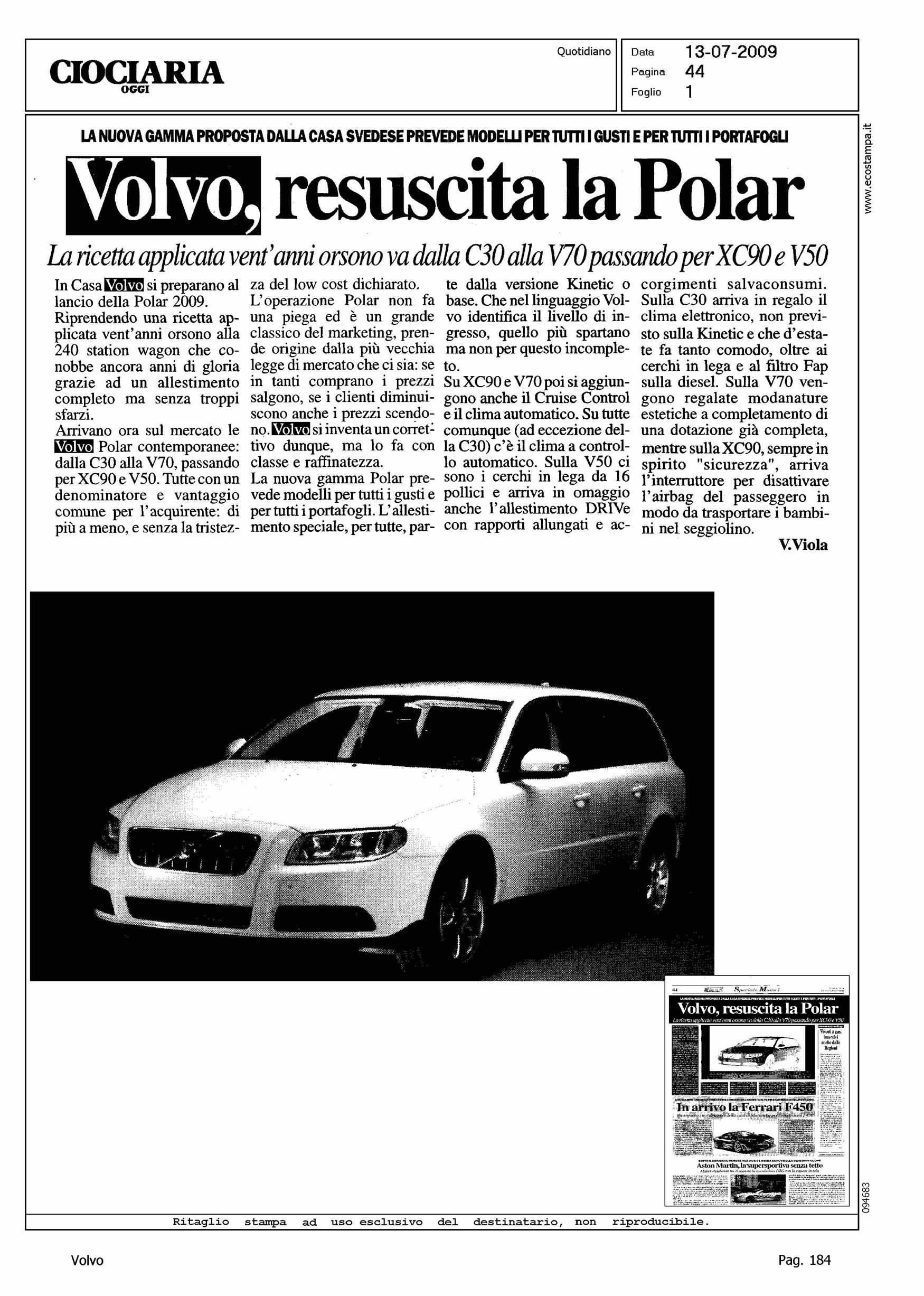 Author: VIOLA, VINCENZOLine: Corporate Model: Corporate Subject: - Title: VOLVO, RESUSCITA LA POLARHighlight: