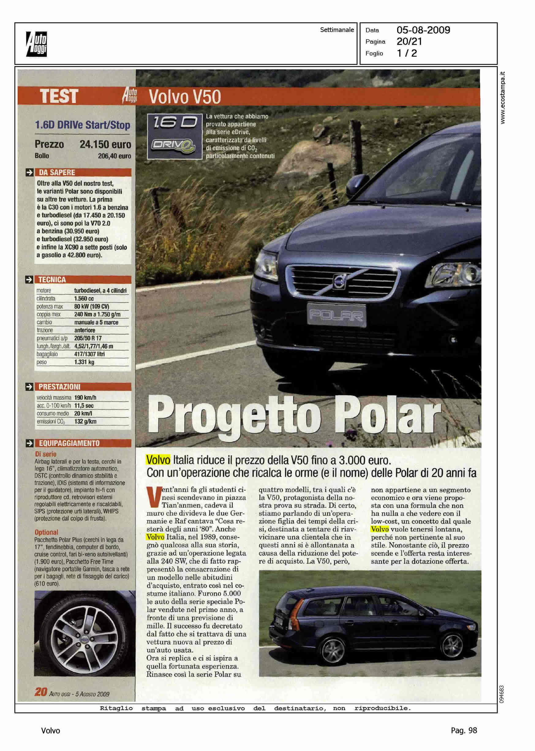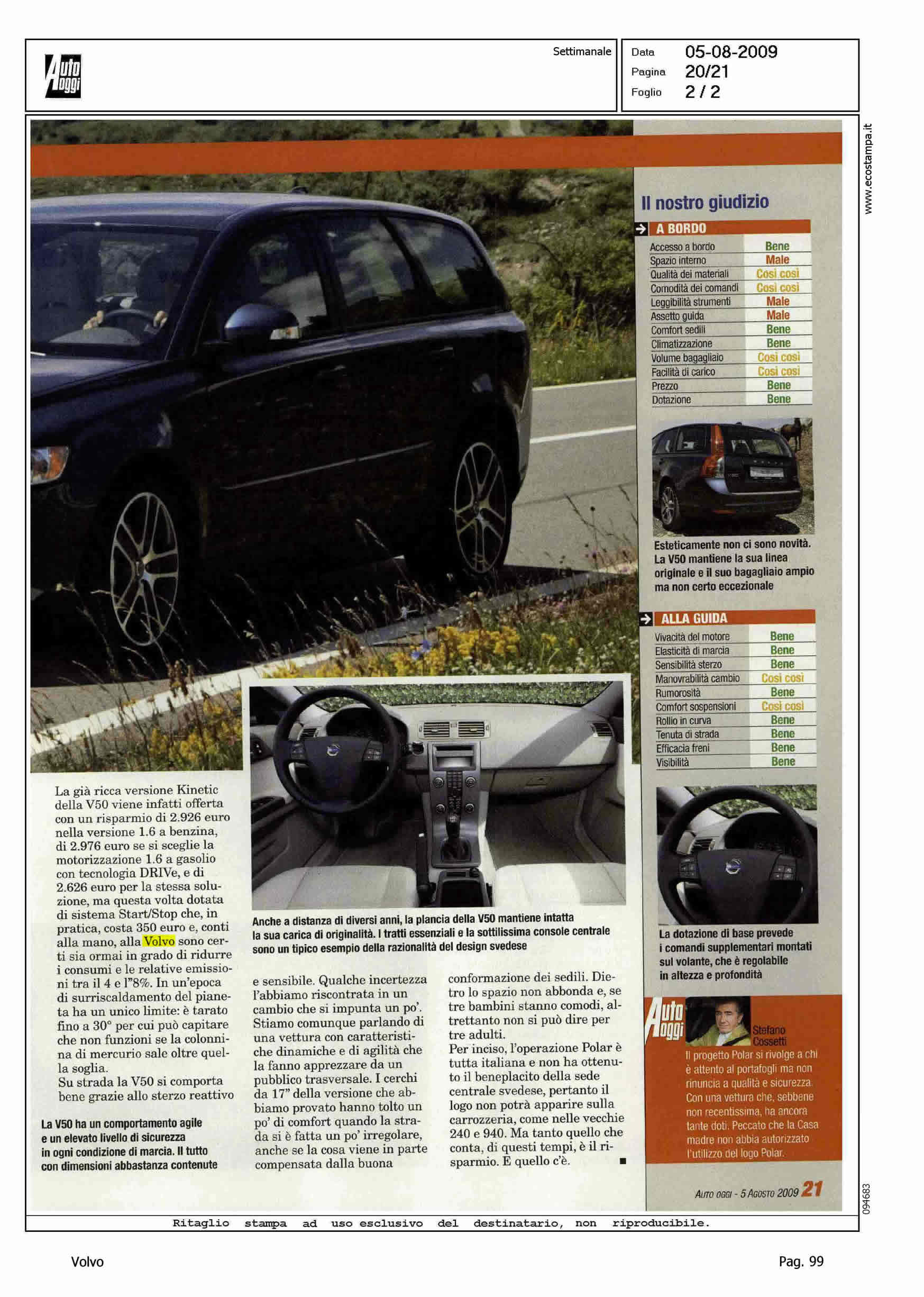 Author: COSSETTI, STEFANOLine: Corporate Model: Volvo S40 - V50 Subject: - Title: PROGETTO POLARHighlight: