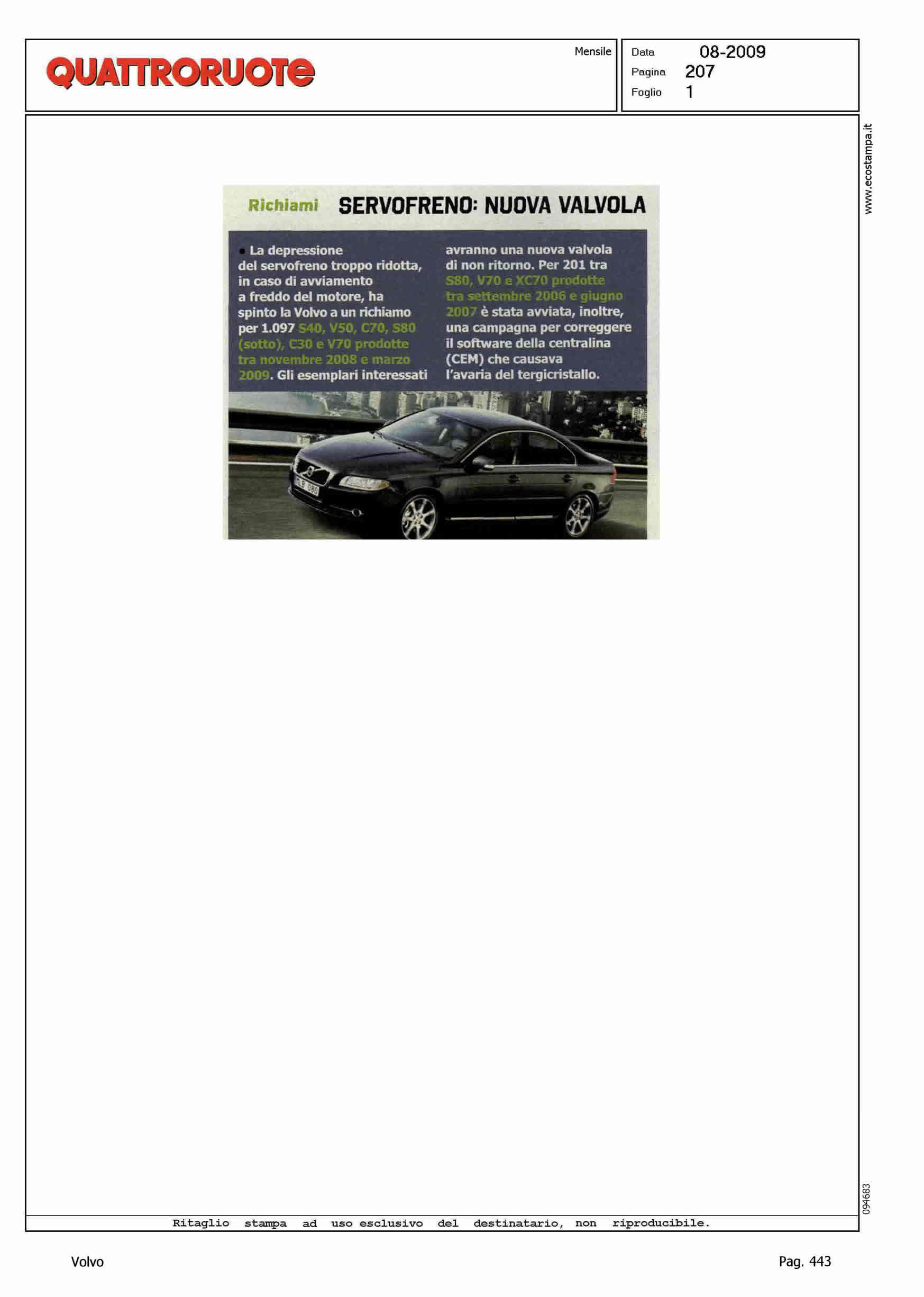 Author: Line: Corporate Model: Volvo S80 Subject: - Title: RICHIAMI - SERVOFRENO: NUOVA VALVOLAHighlight: