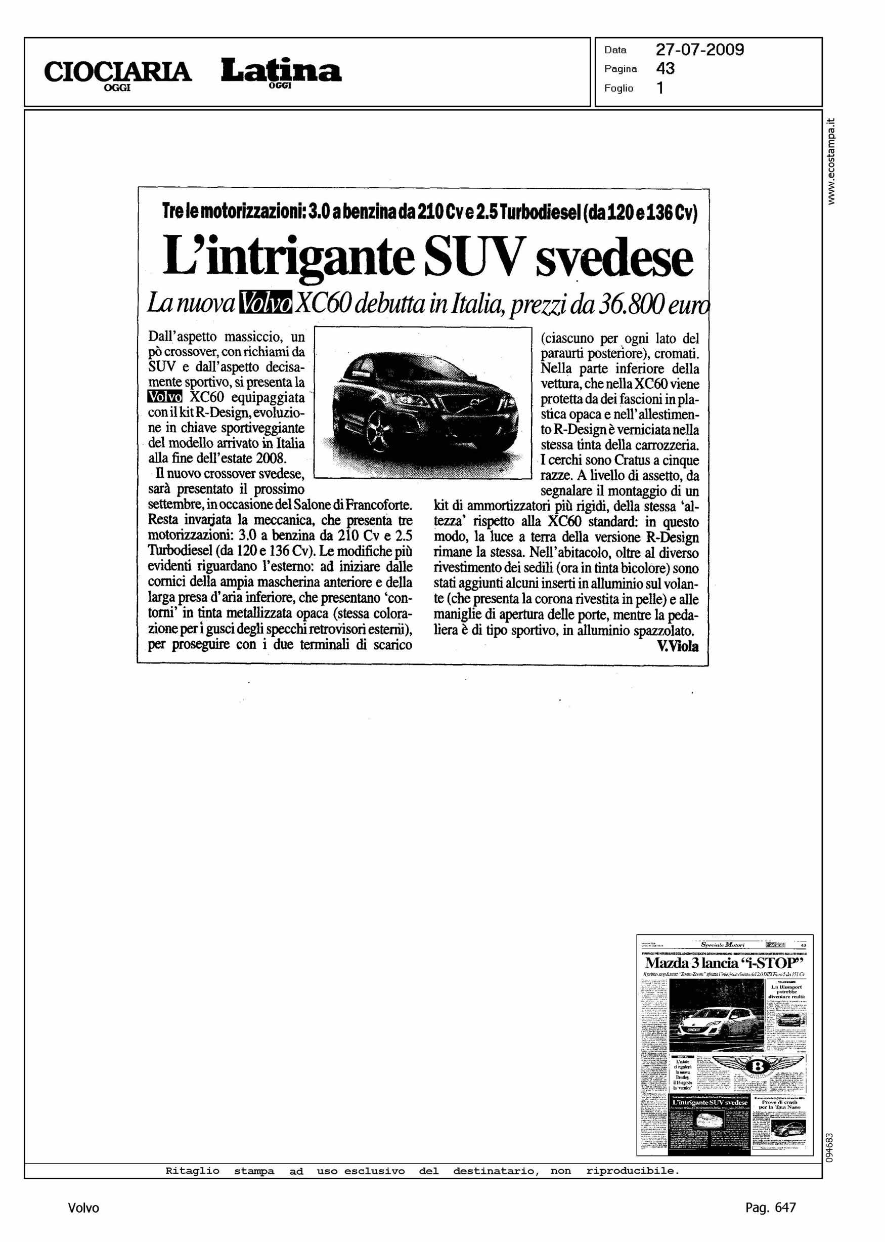 Author: VIOLA, VINCENZOLine: XC60 Model: Subject: - Title: L'INTRIGANTE SUV SVEDESEHighlight: