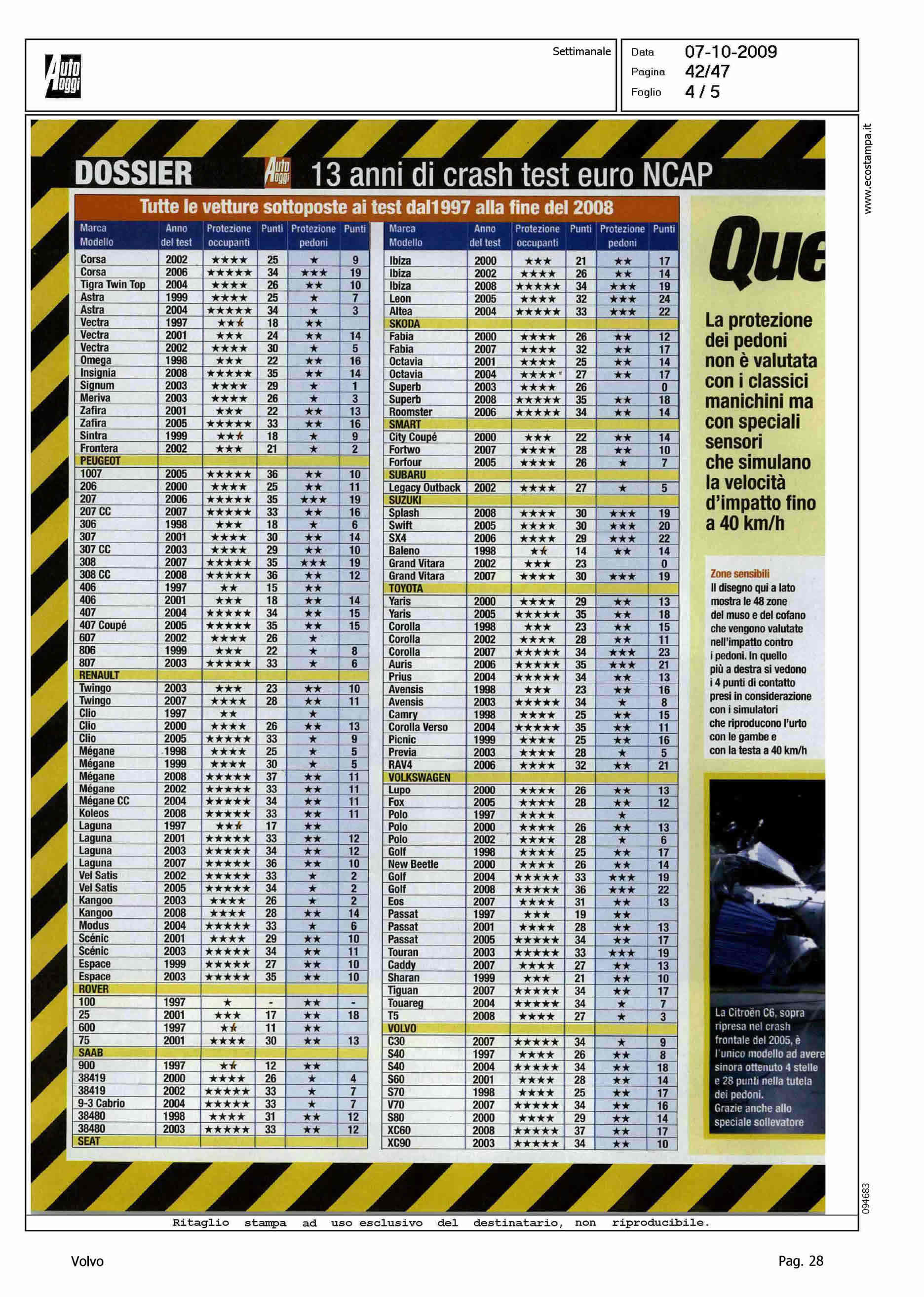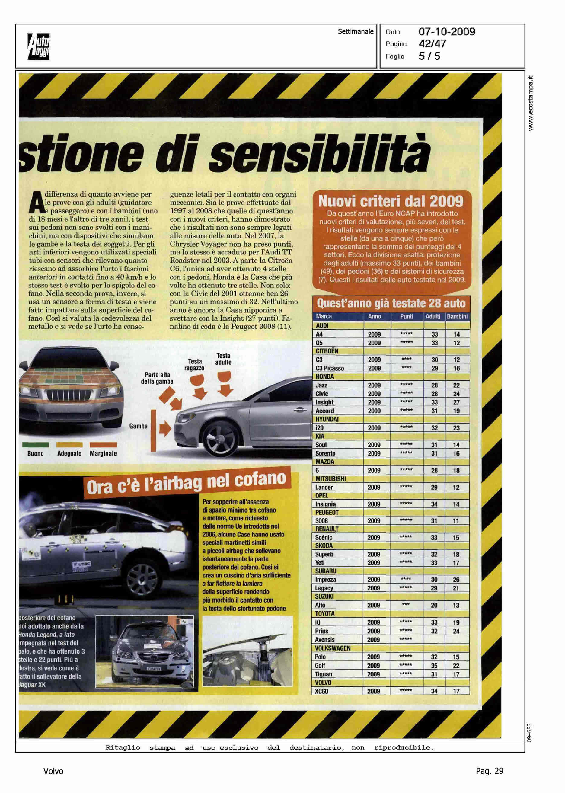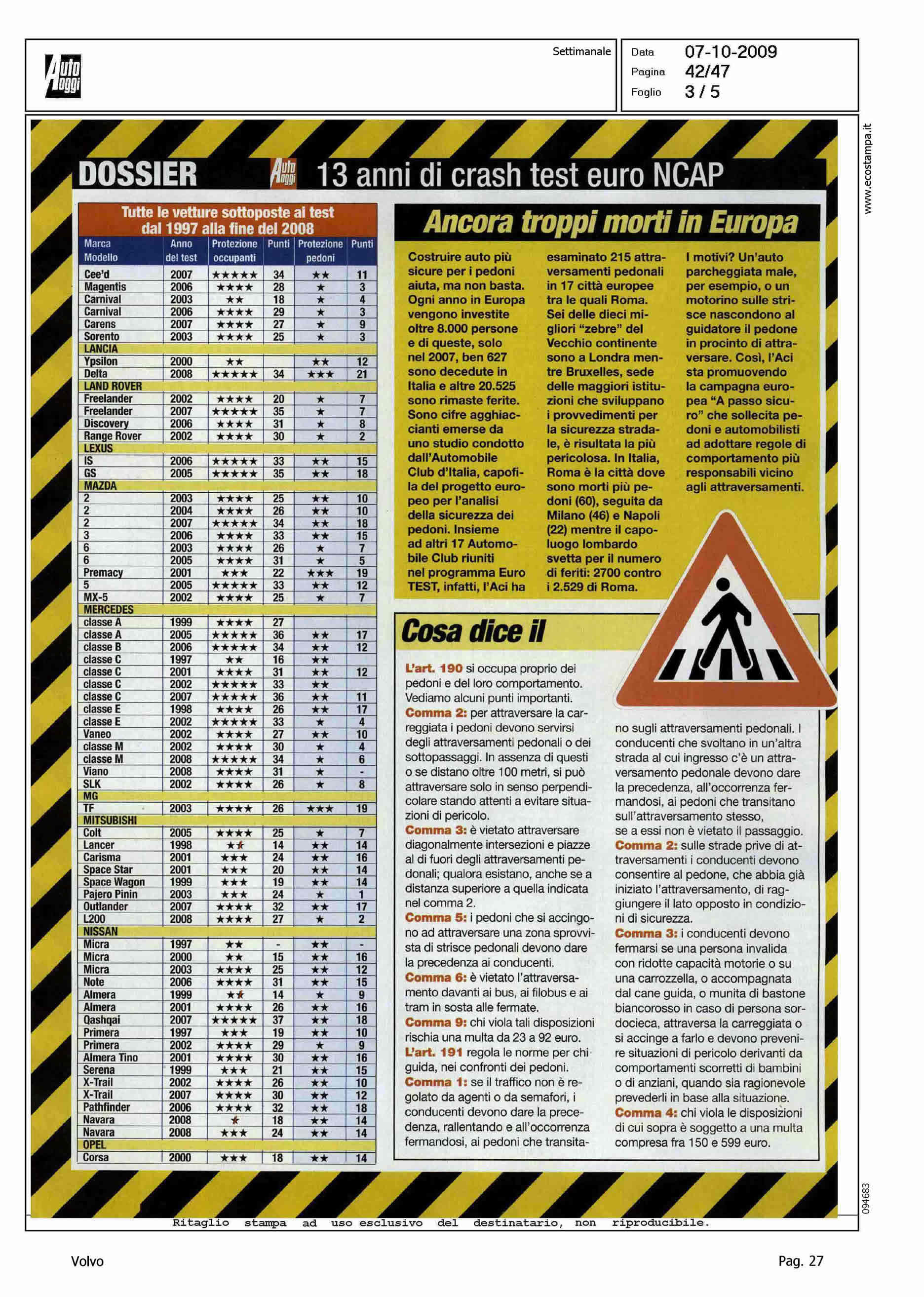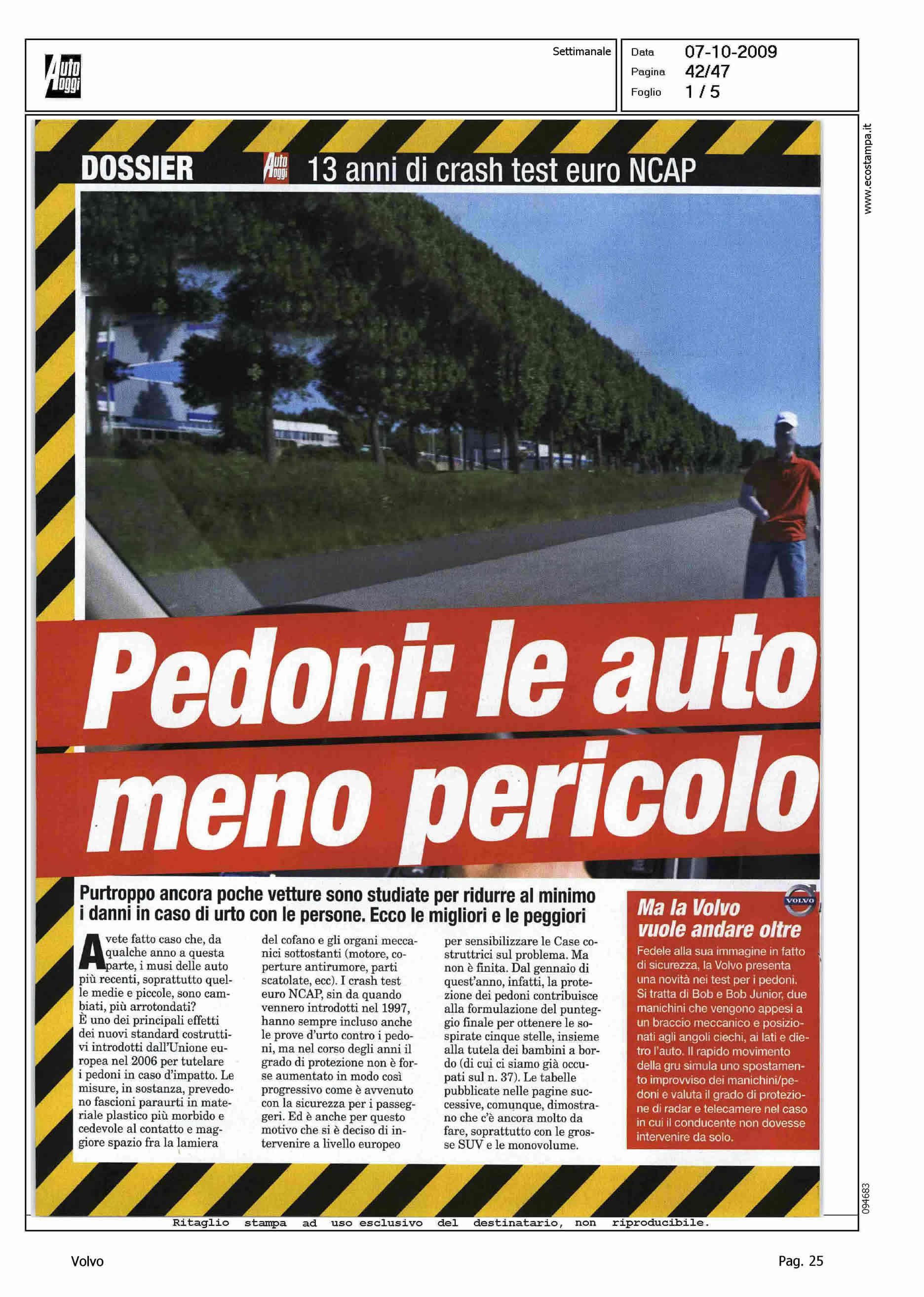 Author: Line: Corporate Model: Corporate Subject: - Title: PEDONI: LE AUTO MENO PERICOLOSE - MA LA VOLVO VUOLE ANDARE OLTREHighlight: