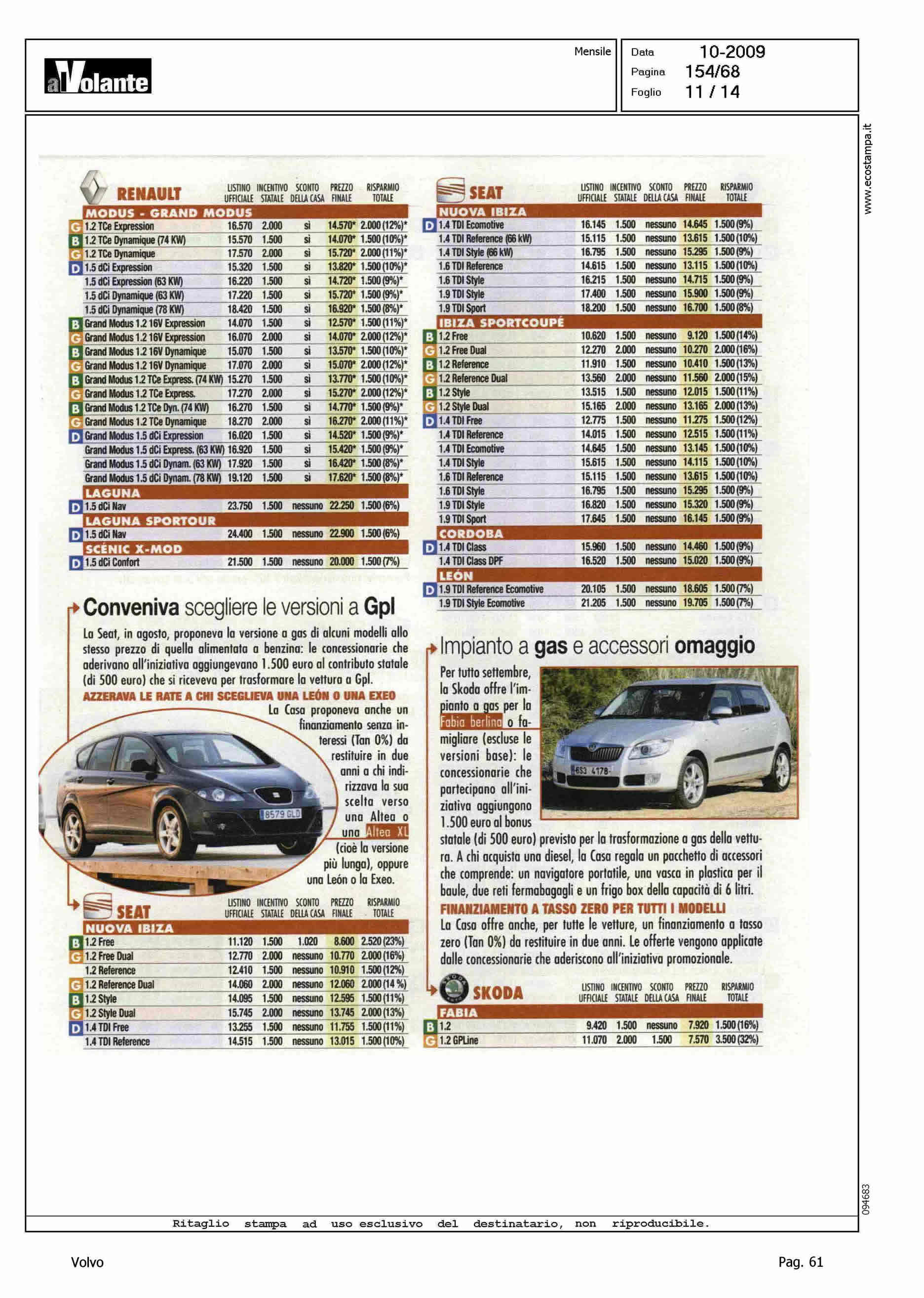 Author: Line: Corporate Model: Corporate Subject: - Title: BONUS ROTTAMAZIONE - SE E' ''SPORCA'' L'AFFARE E' IN VISTA - LISTINI E TASSI ERANO PIU' LEGGERIHighlight: