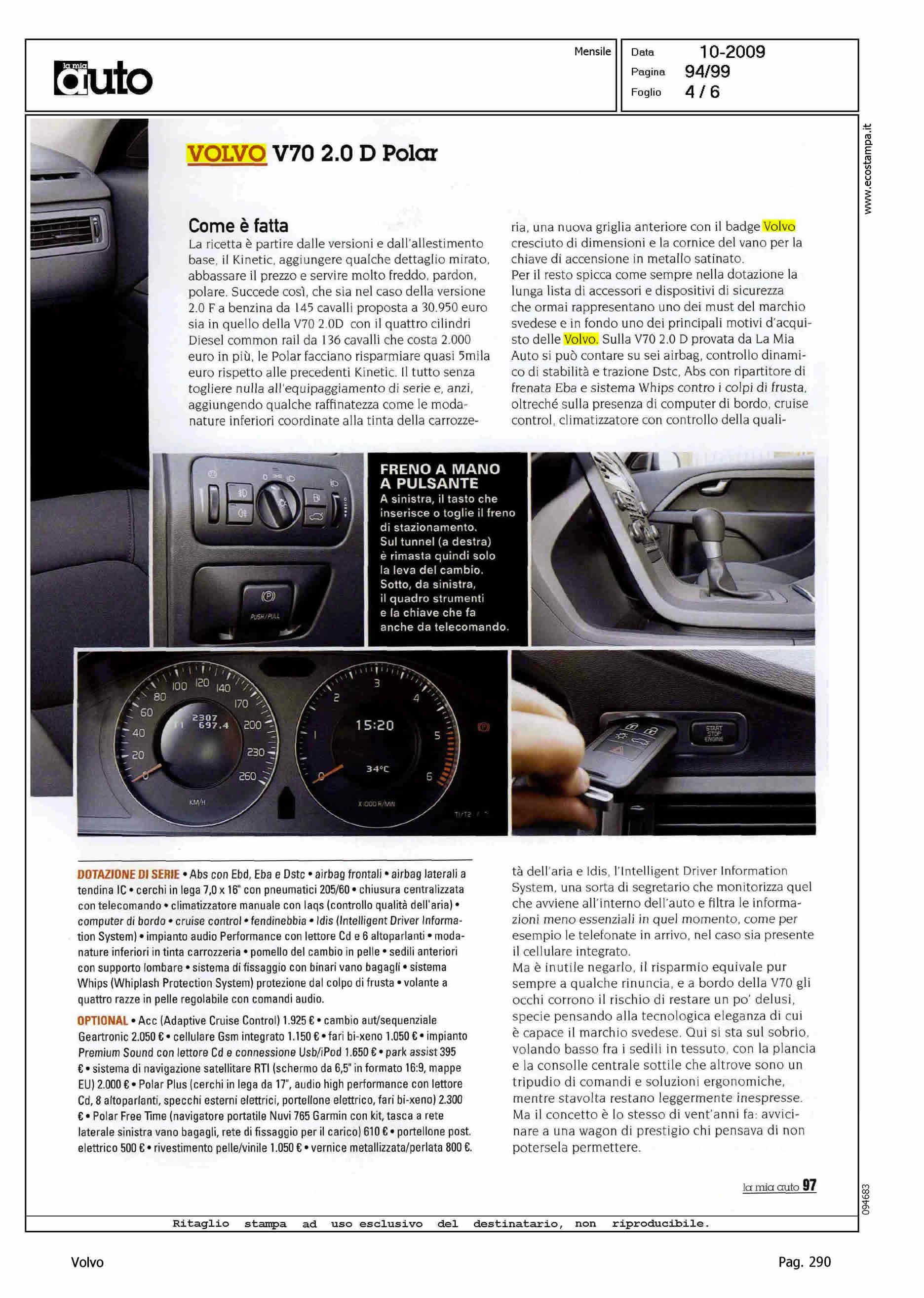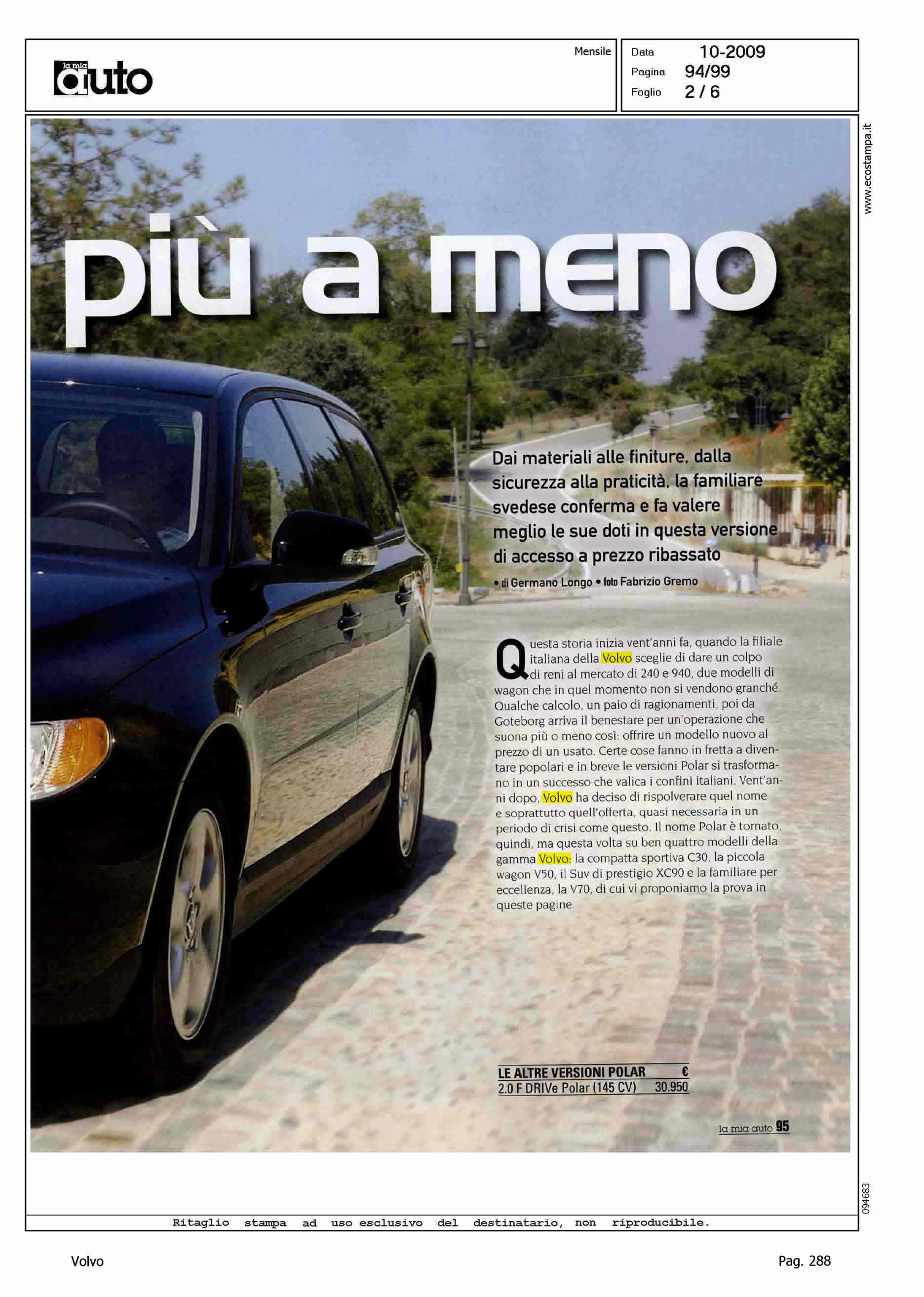 Author: LONGO, GERMANOLine: Corporate Model: Volvo V70 Subject: - Title: DA DI PIU' A MENOHighlight: