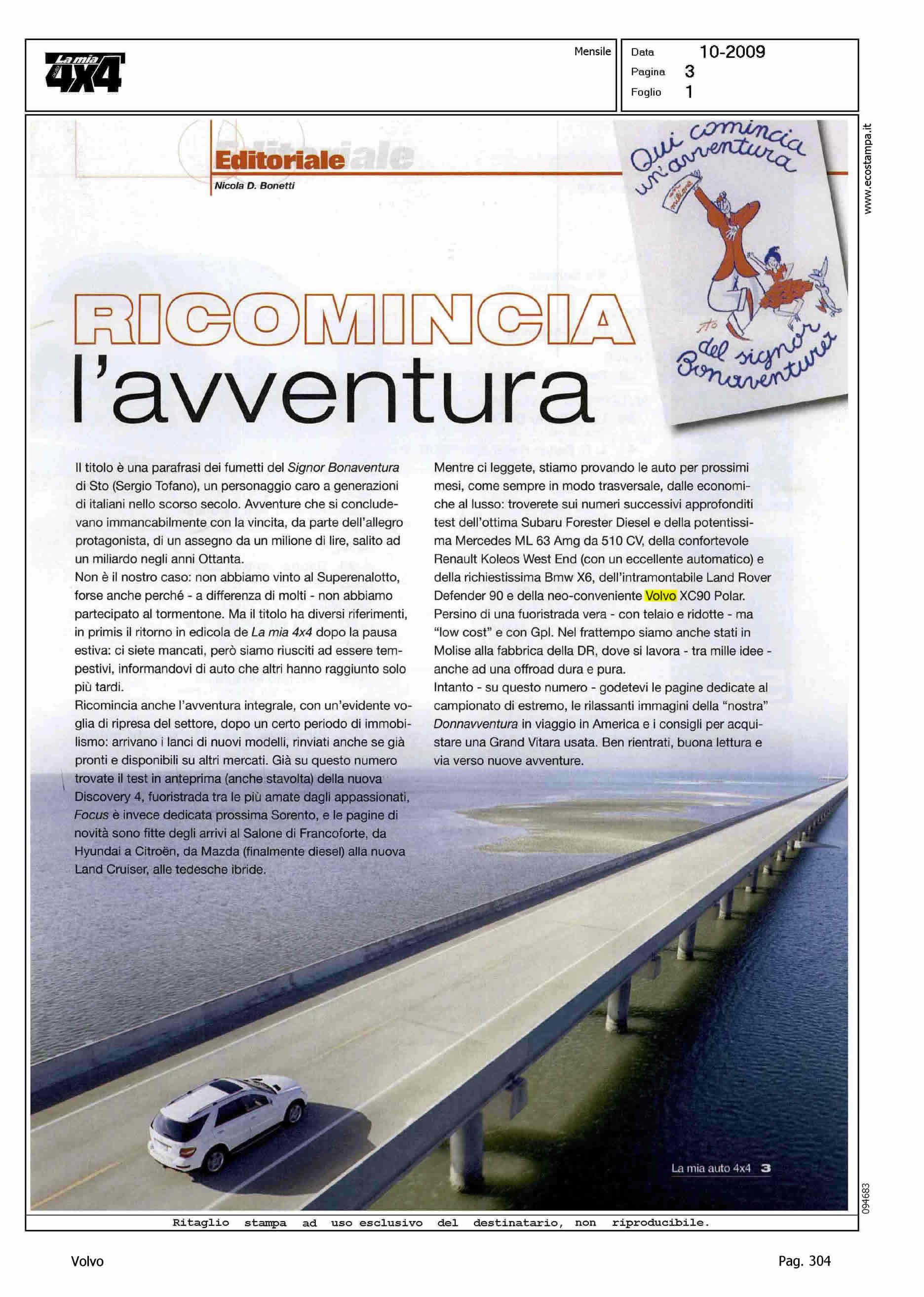 Author: BONETTI, NICOLA D.Line: Corporate Model: Volvo XC90 Subject: - Title: RICOMINCIA L'AVVENTURAHighlight: