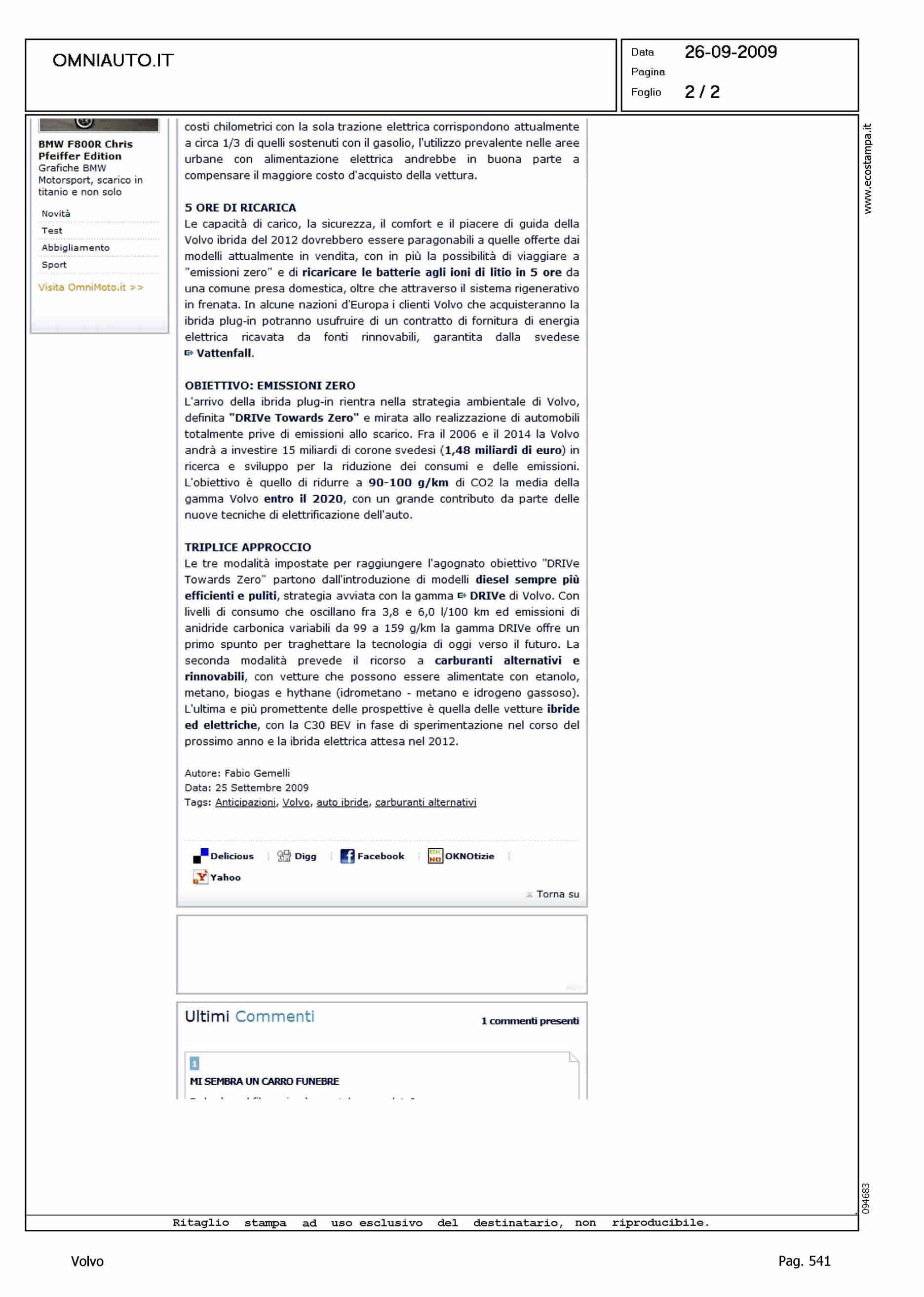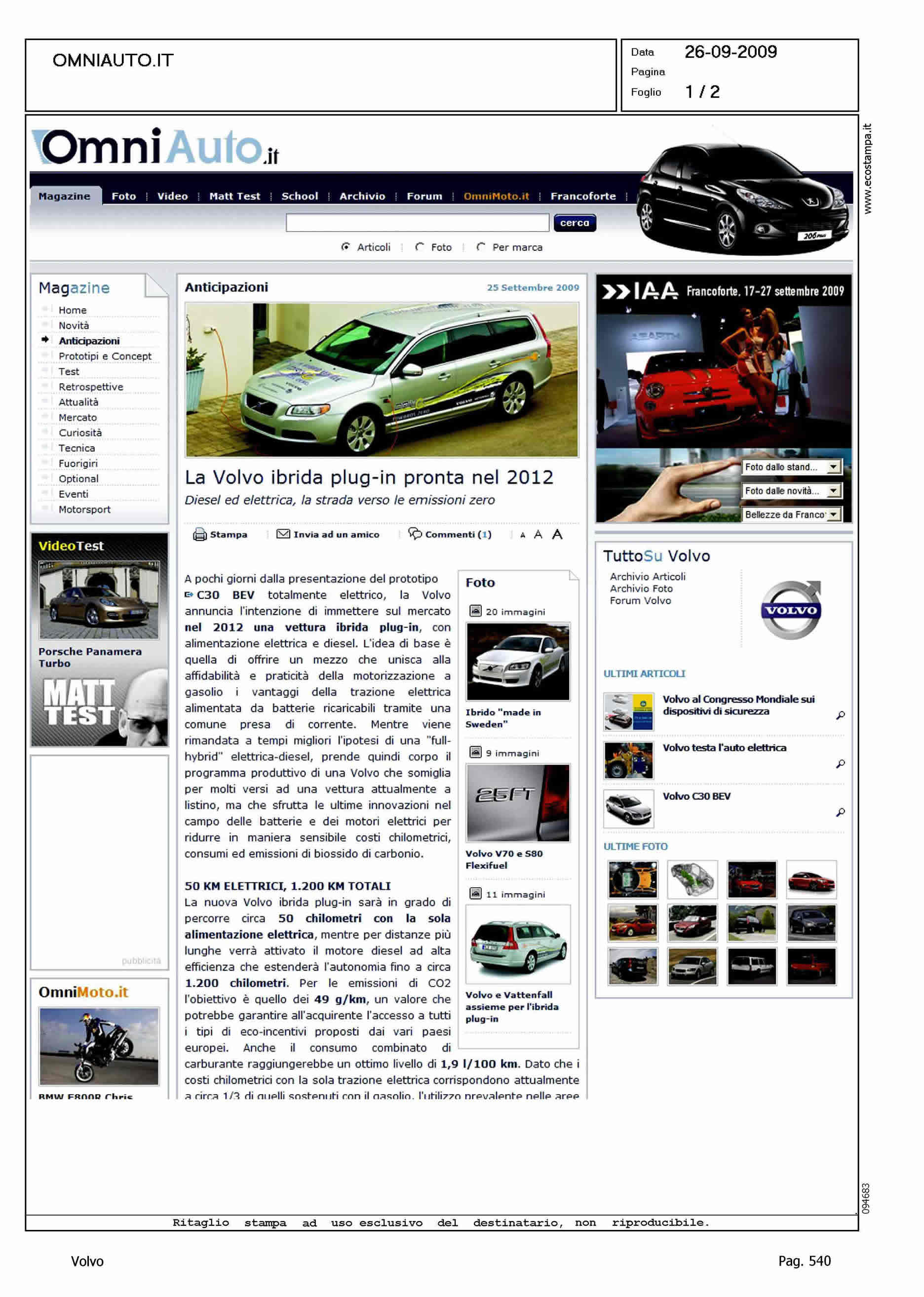 Author: Line: Corporate Model: Corporate Subject: - Title: LA VOLVO IBRIDA PLUG-IN PRONTA NEL 2012Highlight: