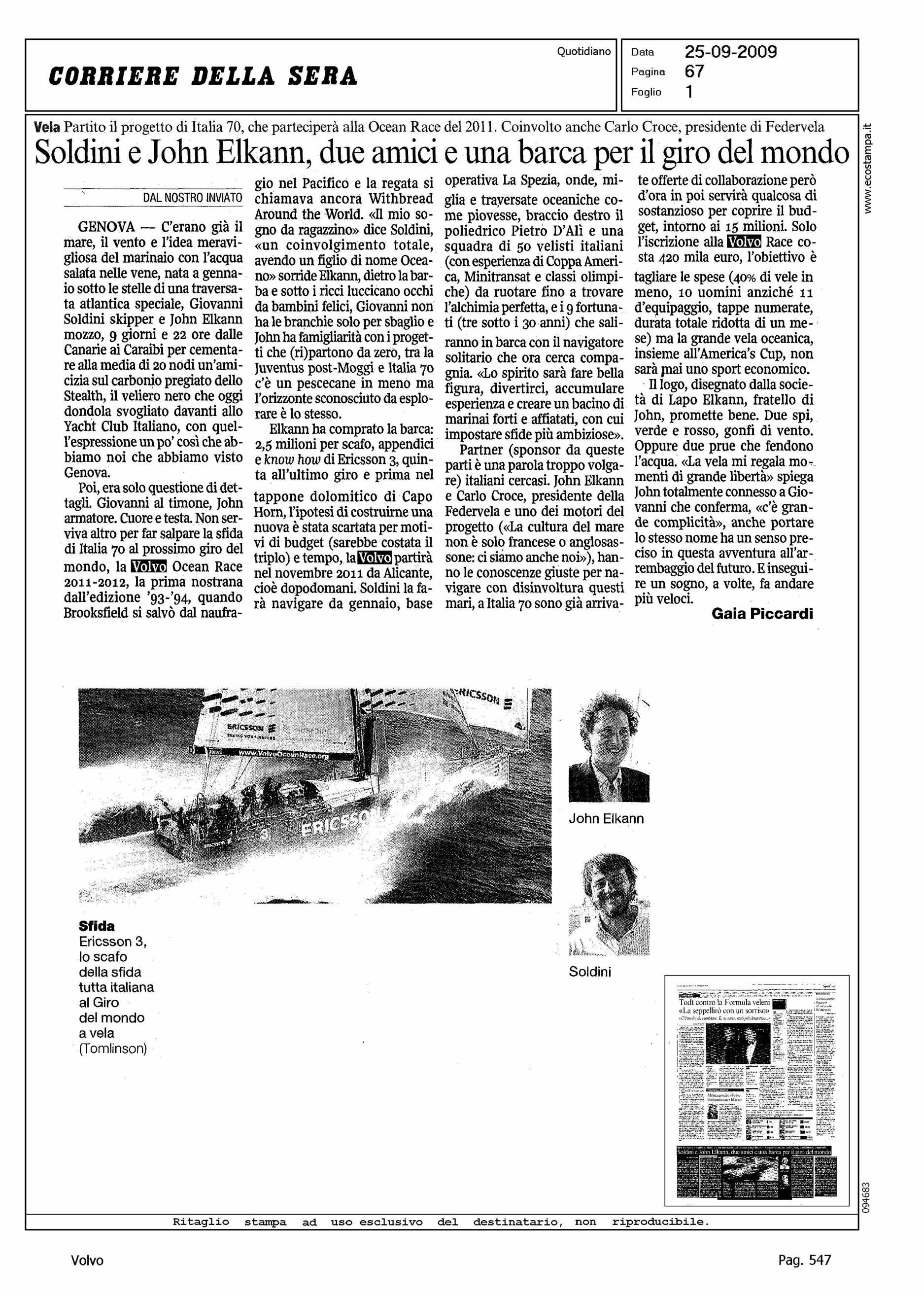 Author: PICCARDI, GAIALine: Corporate Model: Corporate Subject: Volvo Ocean Race Title: SOLDINI E JOHN ELKANN, DUE AMICI E UNA BARCA PER IL GIRO DEL MONDOHighlight: