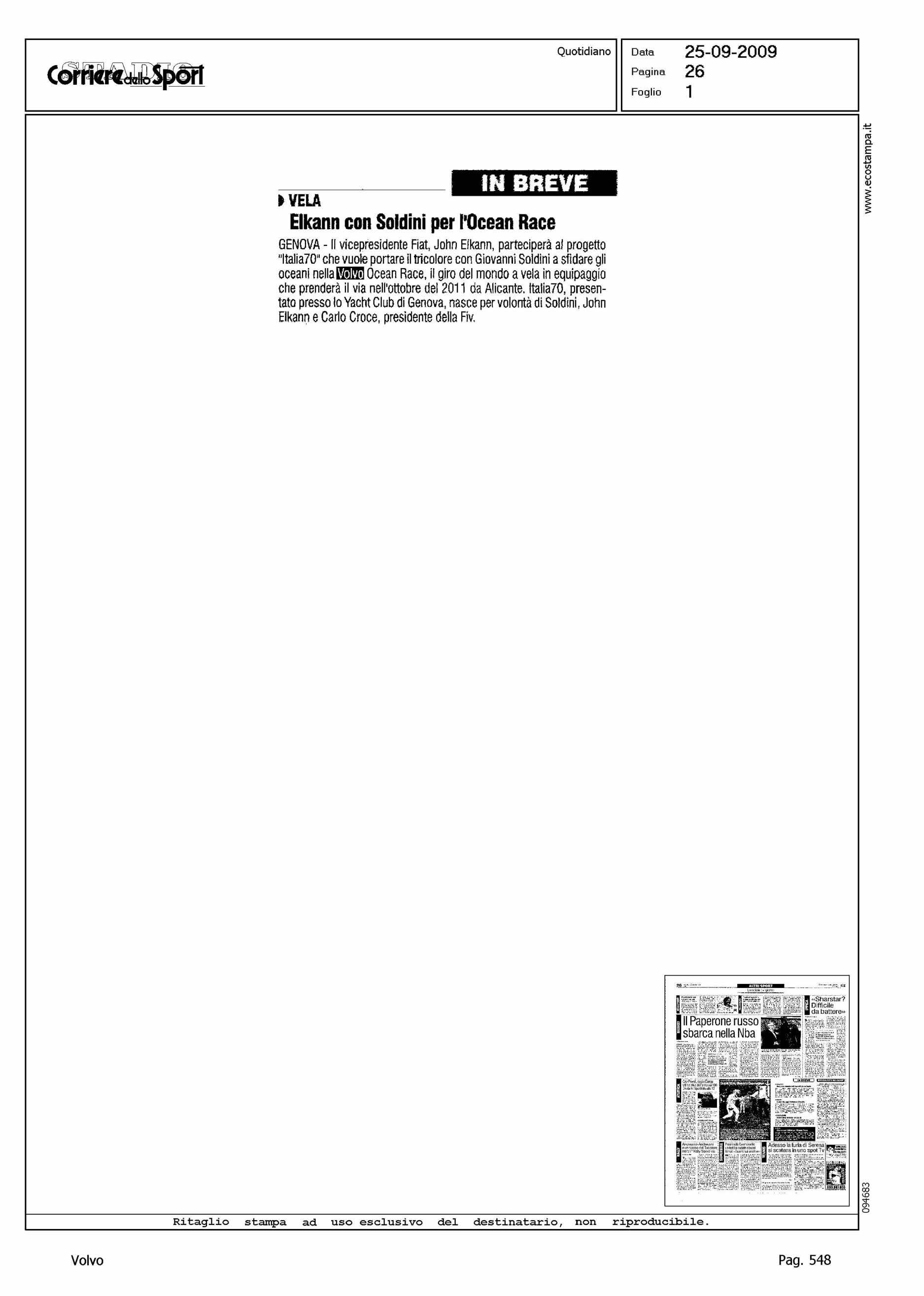 Author: Line: Corporate Model: Corporate Subject: Volvo Ocean Race Title: ELKANN CON SOLDINI PER L'OCEAN RACEHighlight: