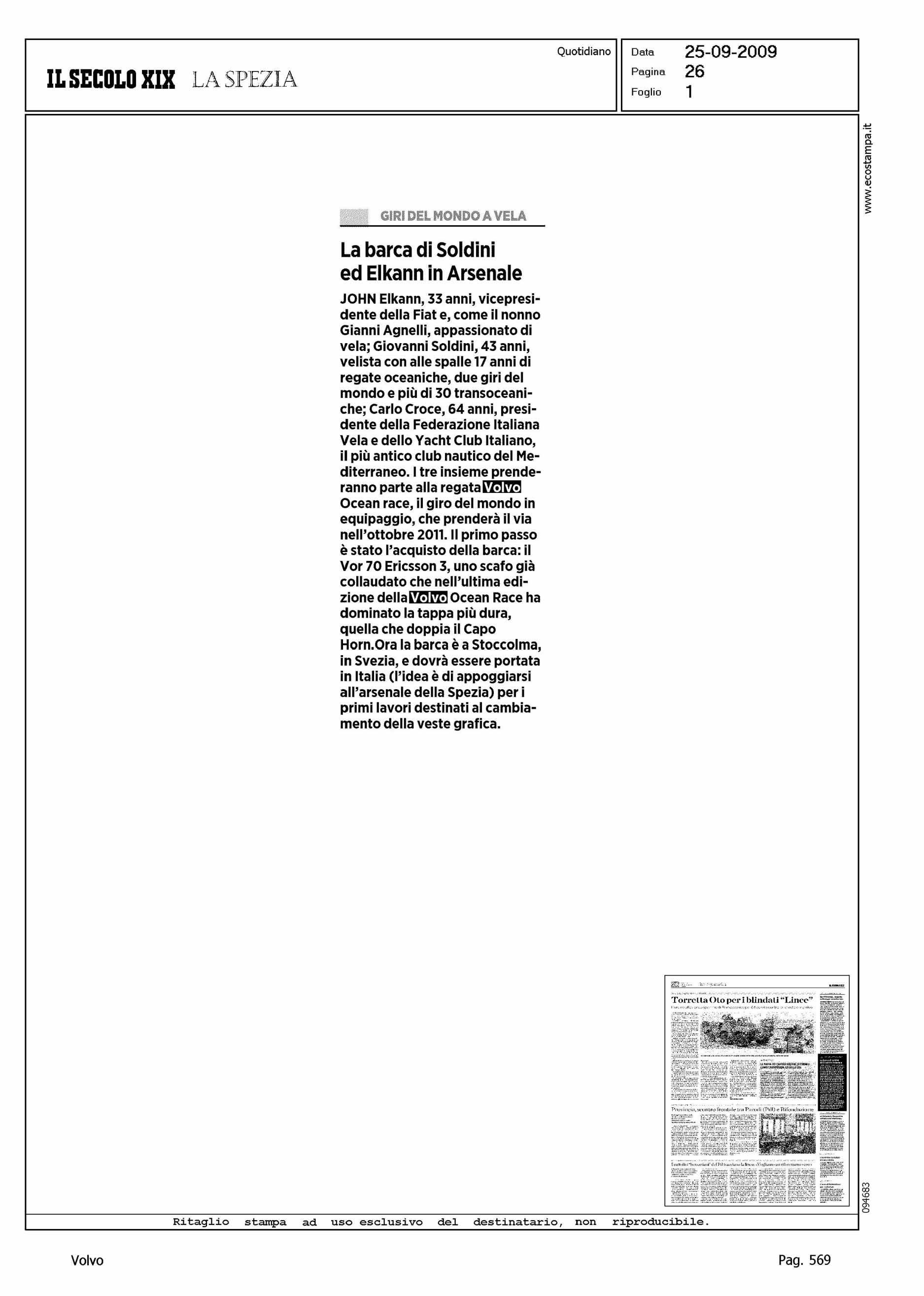 Author: Line: Corporate Model: Corporate Subject: Volvo Ocean Race Title: LA BARCA DI SOLDINI ED ELKANN IN ARSENALEHighlight: