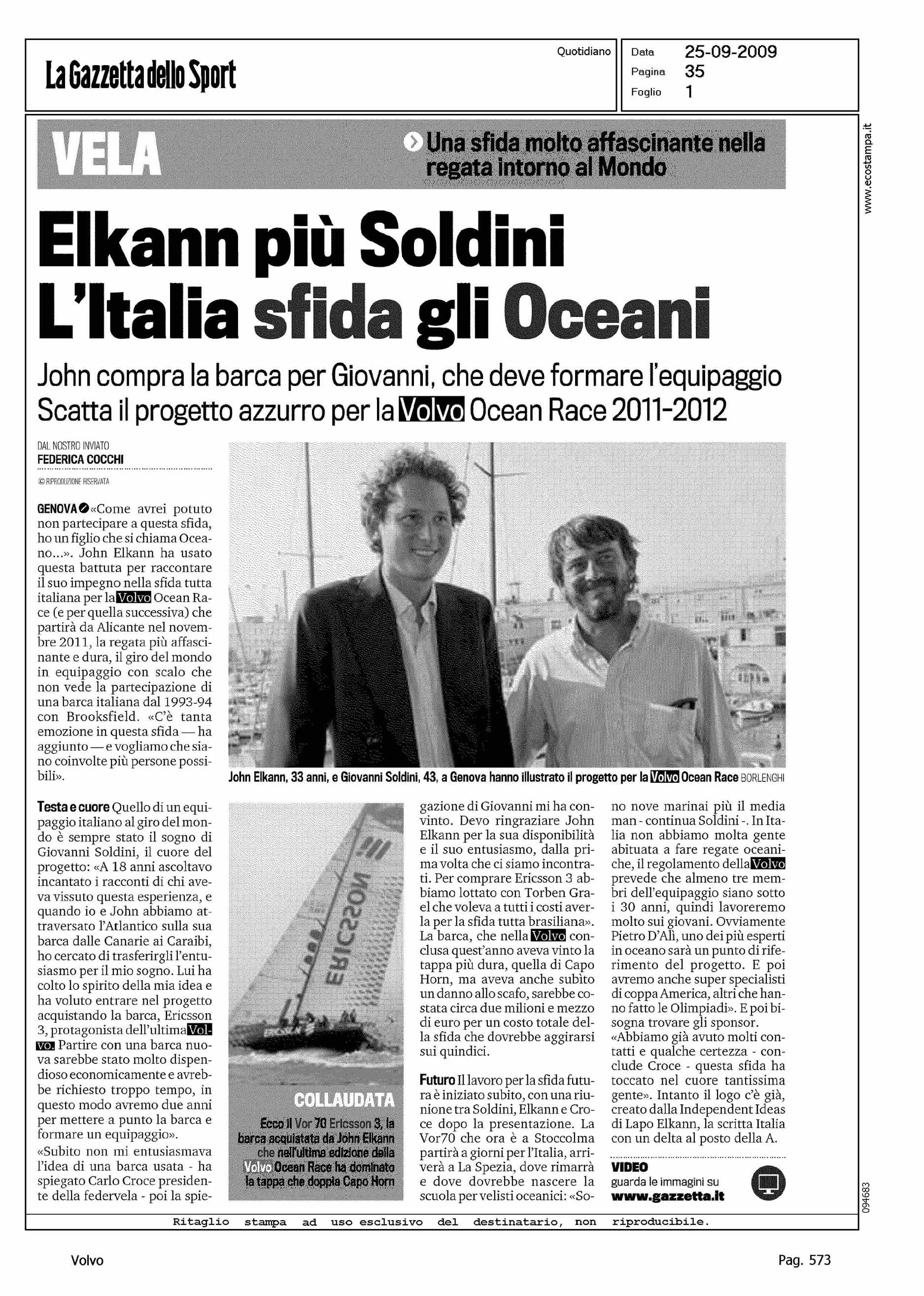 Author: COCCHI, FEDERICALine: Corporate Model: Corporate Subject: Volvo Ocean Race Title: ELKANN PIU' SOLDINI - L'ITALIA SFIDA GLI OCEANIHighlight: