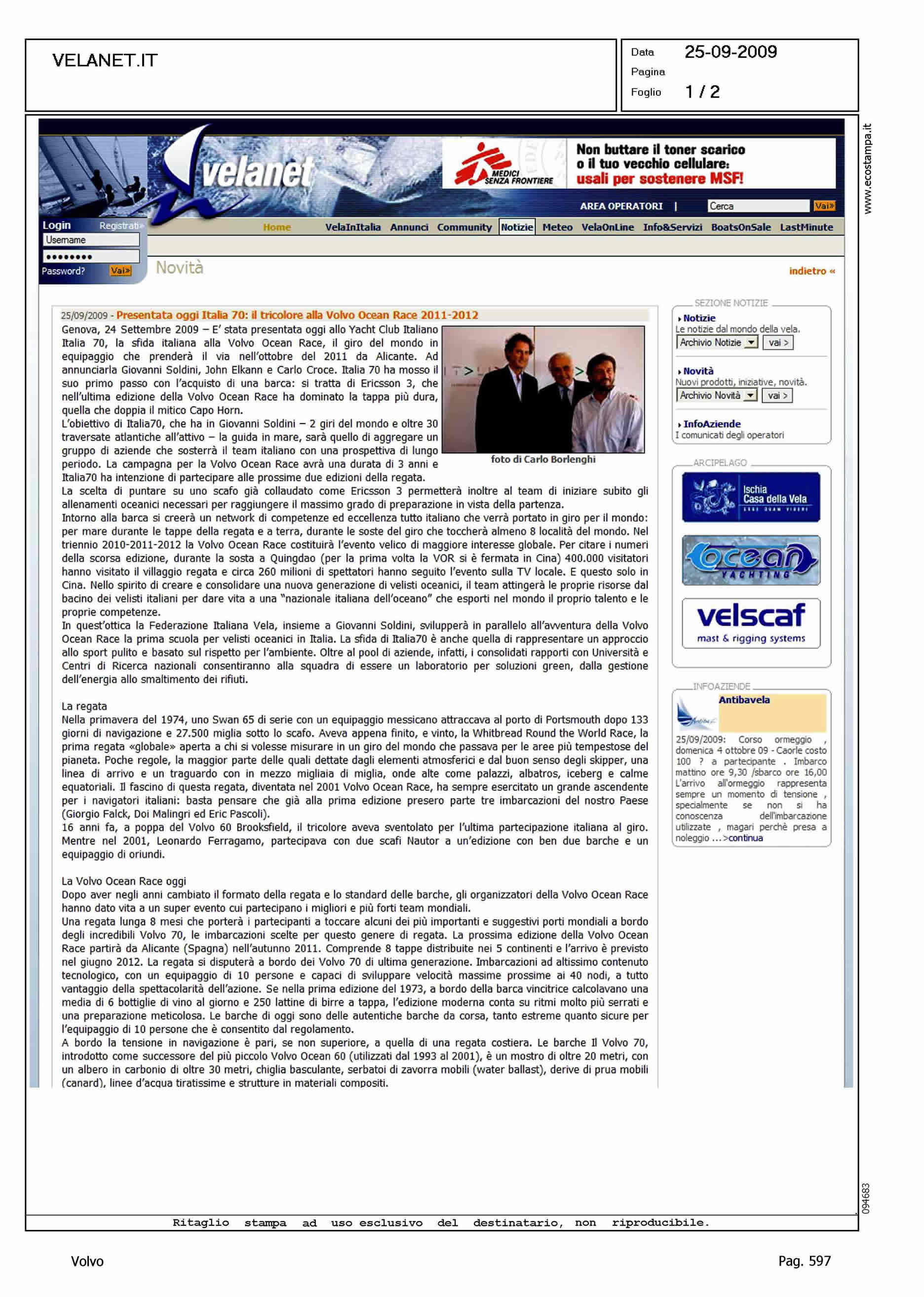 Author: Line: Corporate Model: Corporate Subject: Volvo Ocean Race Title: PRESENTATA OGGI ITALIA 70: IL TRICOLORE ALLA VOLVO OCEAN RACE 2011-2012Highlight: