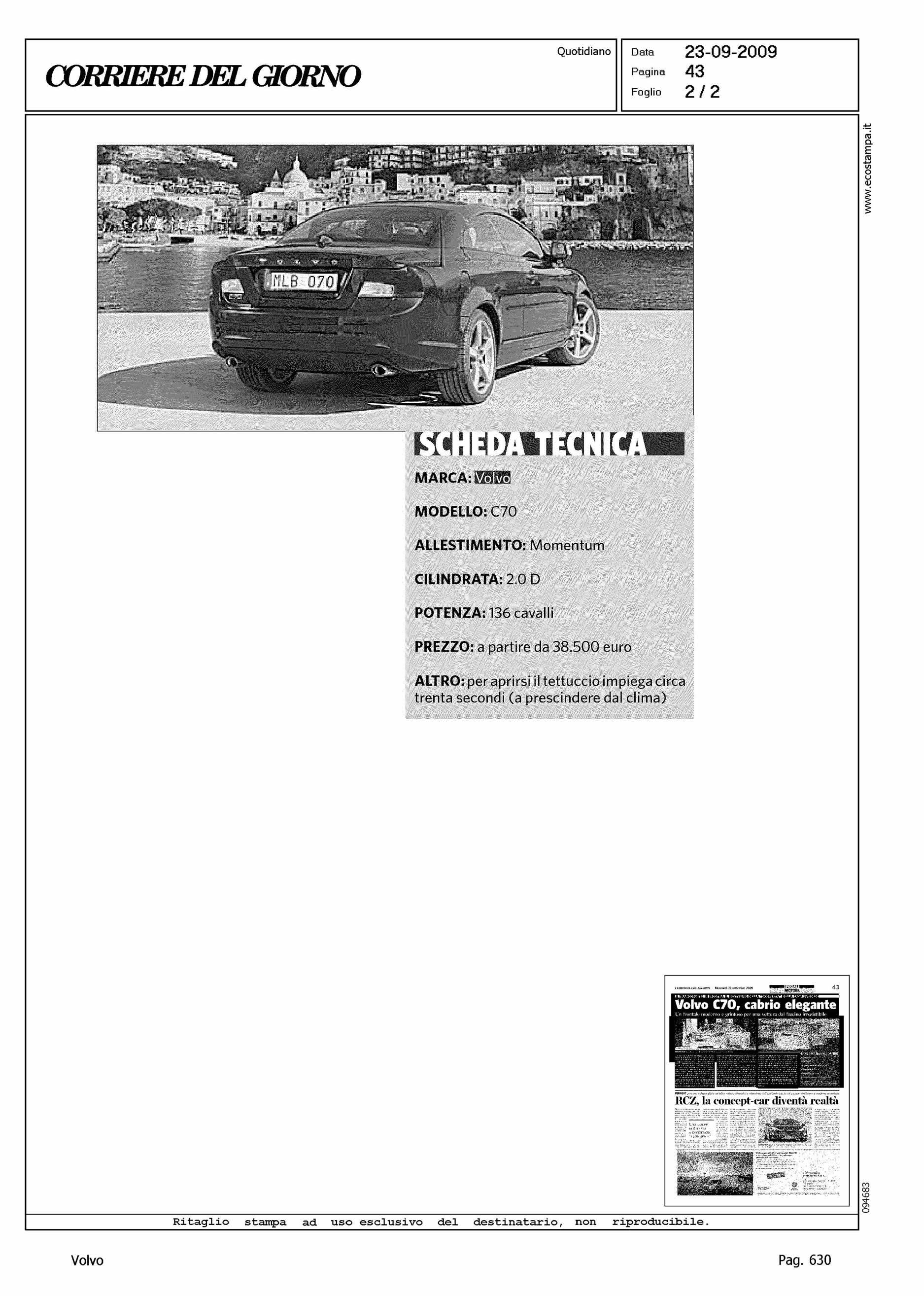 Author: Line: Corporate Model: Volvo C70 Convertible Subject: - Title: VOLVO C70, CABRIO ELEGANTEHighlight: