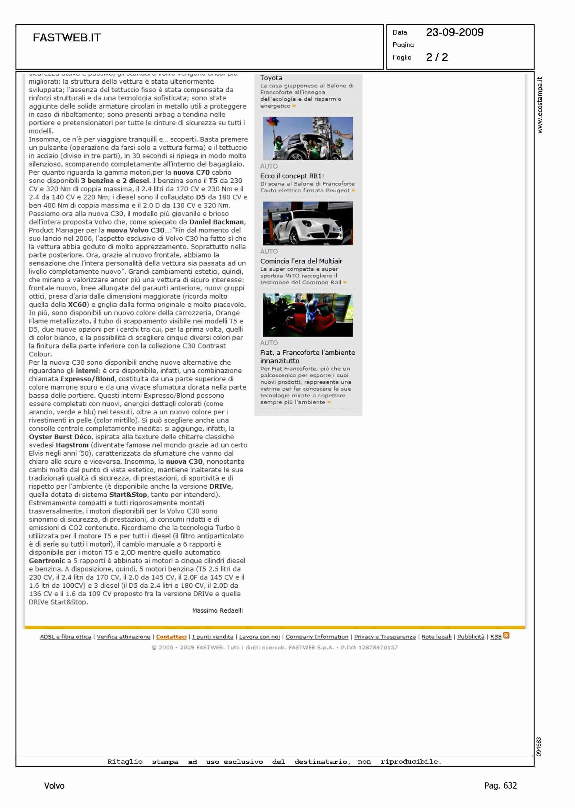 Author: Line: Corporate Model: Volvo C30 Subject: - Title: VOLVO, ANCOR PIU' BELLE E SICUREHighlight:
