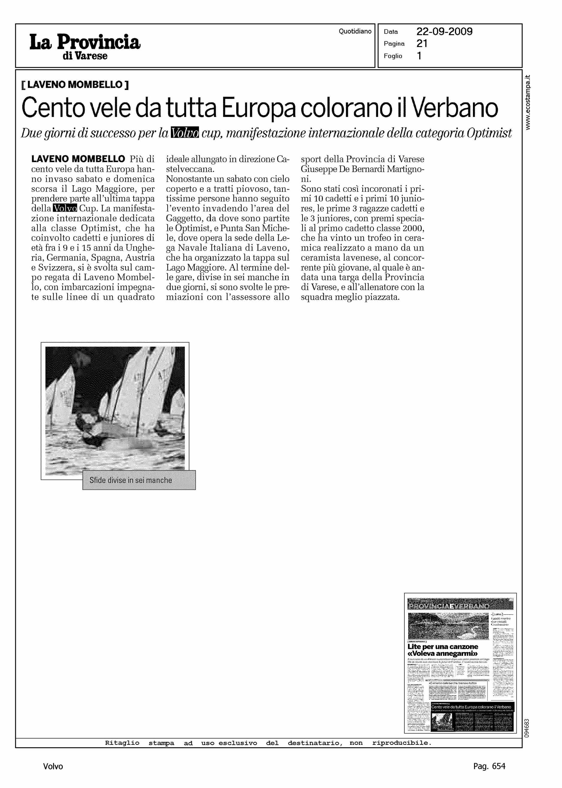 Author: Line: Corporate Model: Corporate Subject: Volvo Cup Title: CENTO VELE DA TUTTA EUROPA COLORANO IL VERBANOHighlight: