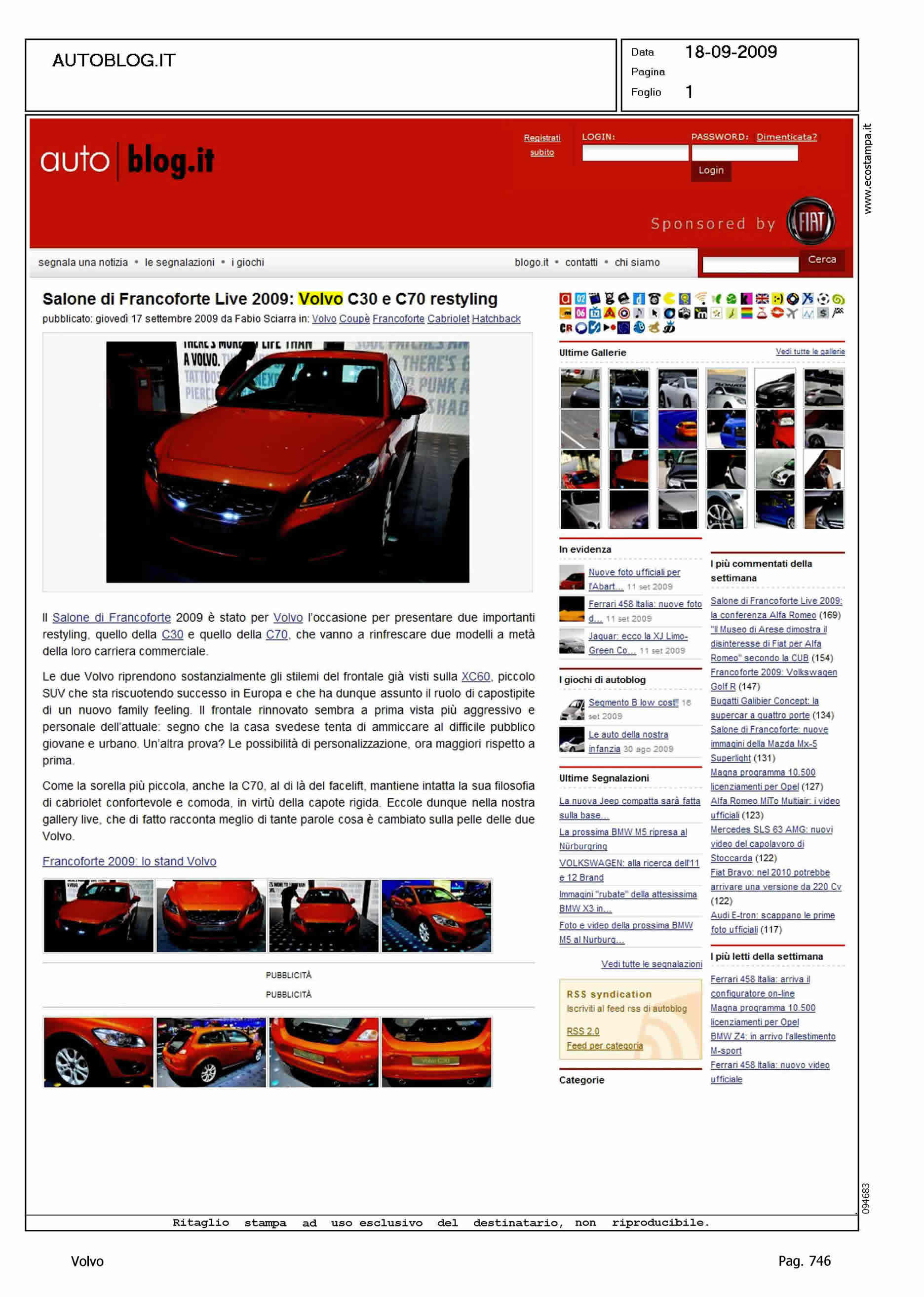 Author: Line: Corporate Model: Corporate Subject: - Title: SALONE DI FRANCOFORTE LIVE 2009: VOLVO C30 E C70 RESTYLINGHighlight: