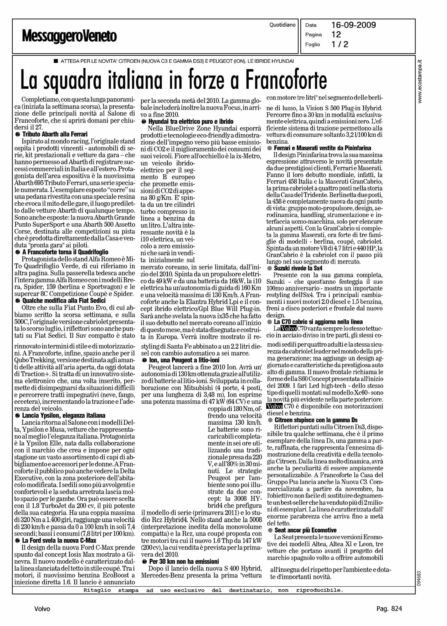 Author: Line: Corporate Model: Volvo C70 Convertible Subject: - Title: LA SQUADRA ITALIANA IN FORZE A FRANCOFORTE - LA C70 CABRIOSI AGGIORNA NELLA LINEAHighlight: