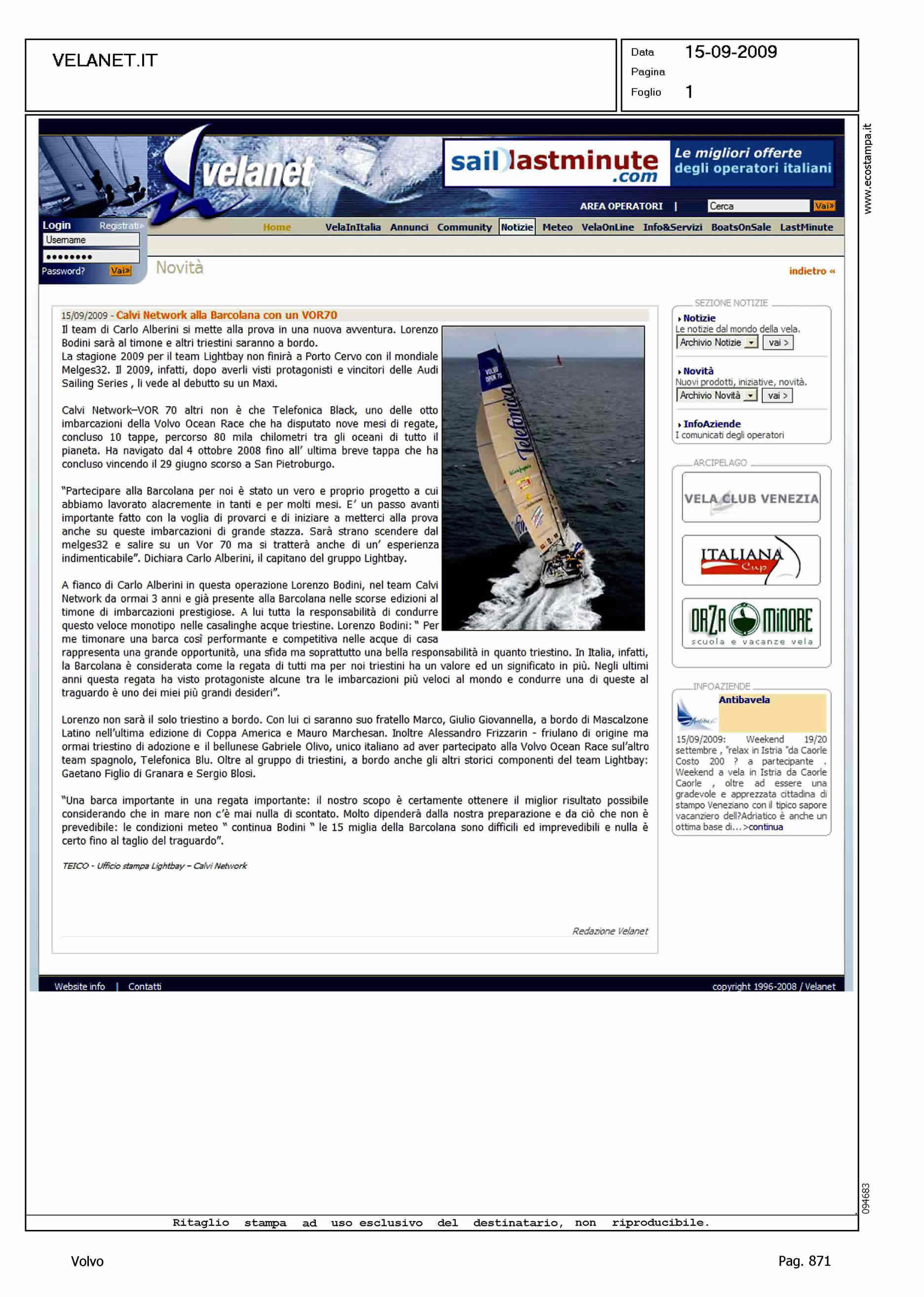Author: Line: Corporate Model: Corporate Subject: Volvo Ocean Race Title: CALVI NETWORK ALLA BARCOLANA CON UN VOR70Highlight: