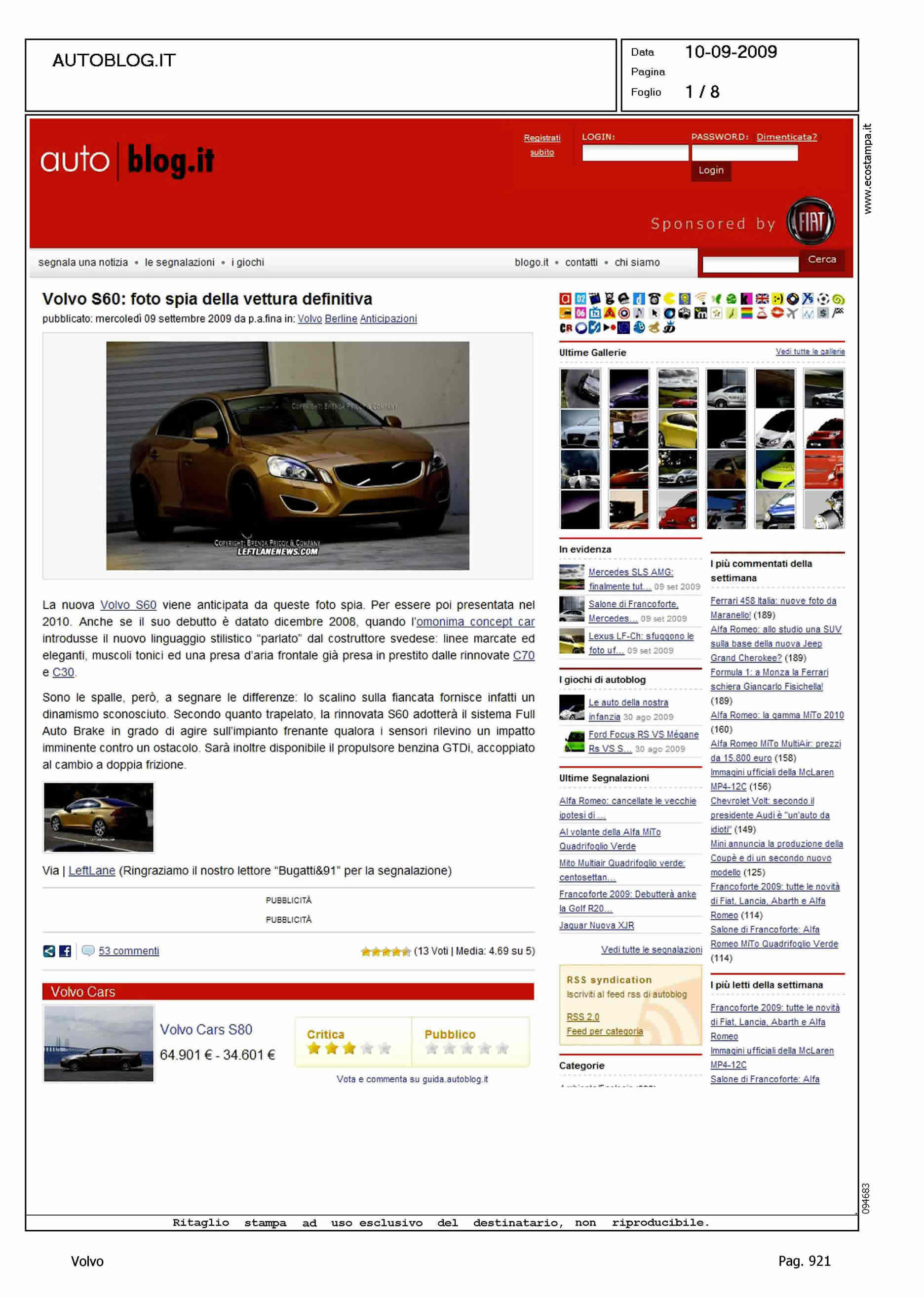 Author: Line: S60 Model: Subject: - Title: VOLVO S60: FOTO SPIA DELLA VETTURA DEFINITIVAHighlight: