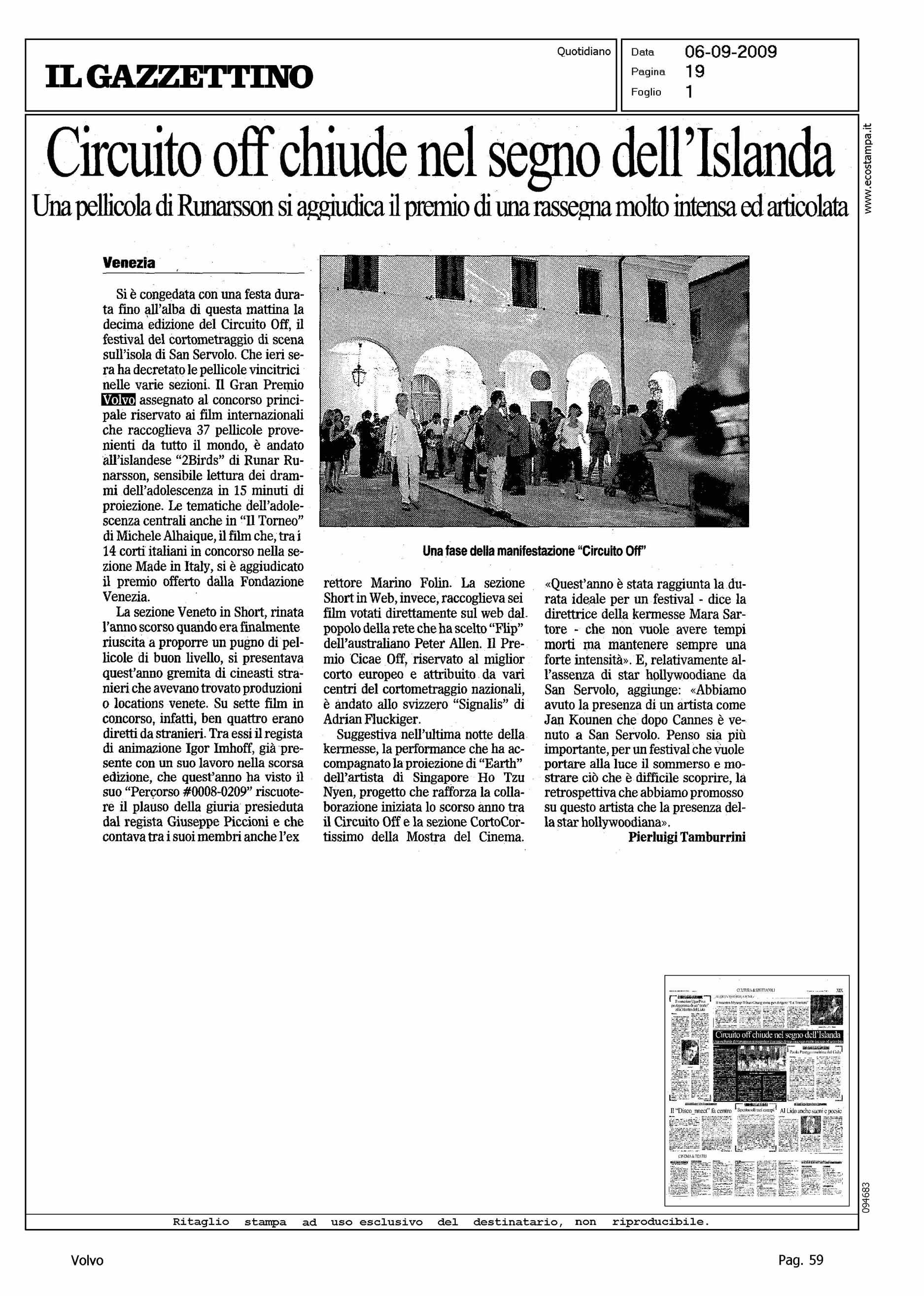 Author: TAMBURINI, PIERLUIGILine: Corporate Model: Corporate Subject: - Title: CIRCUITO OFF CHIUDE NEL SEGNO DELL'ISLANDAHighlight: