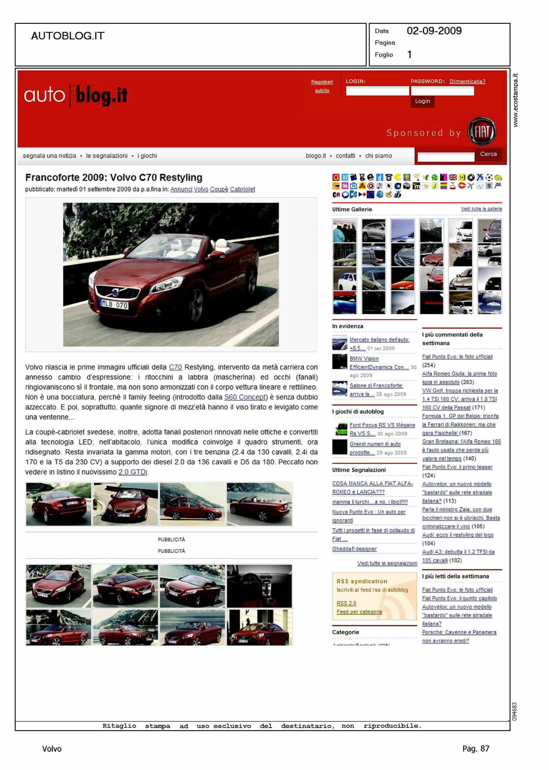 Author: Line: Corporate Model: Volvo C70 Convertible Subject: - Title: FRANFORTE 2009: VOLVO C70 RESTYLINGHighlight: