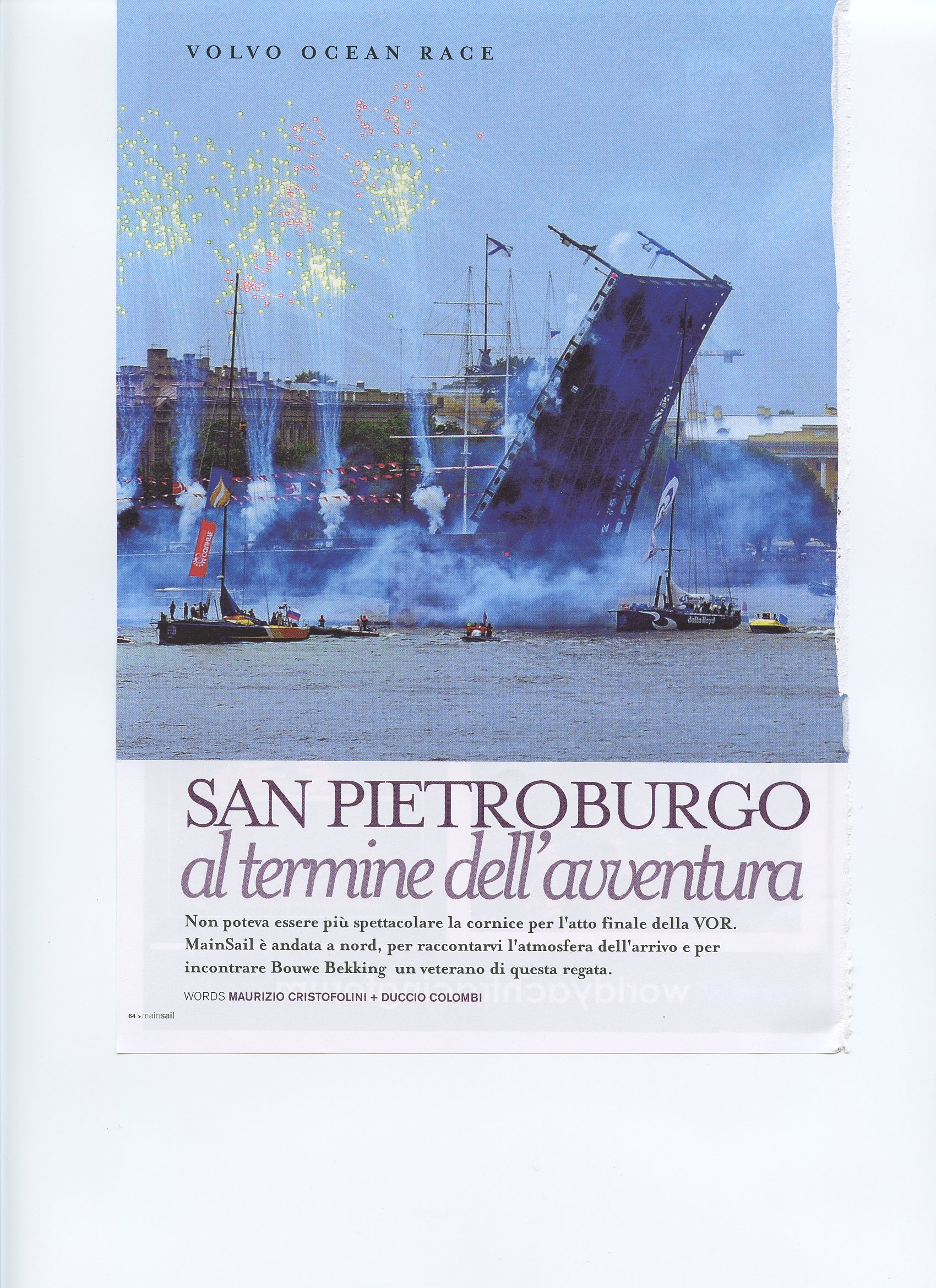 Author: CRISTOFOLINI/COLOMBILine: Corporate Model: Corporate Subject: Volvo Ocean Race Title: SAN PIETROBURGO AL TERMINE DELL'AVVENTURAHighlight: