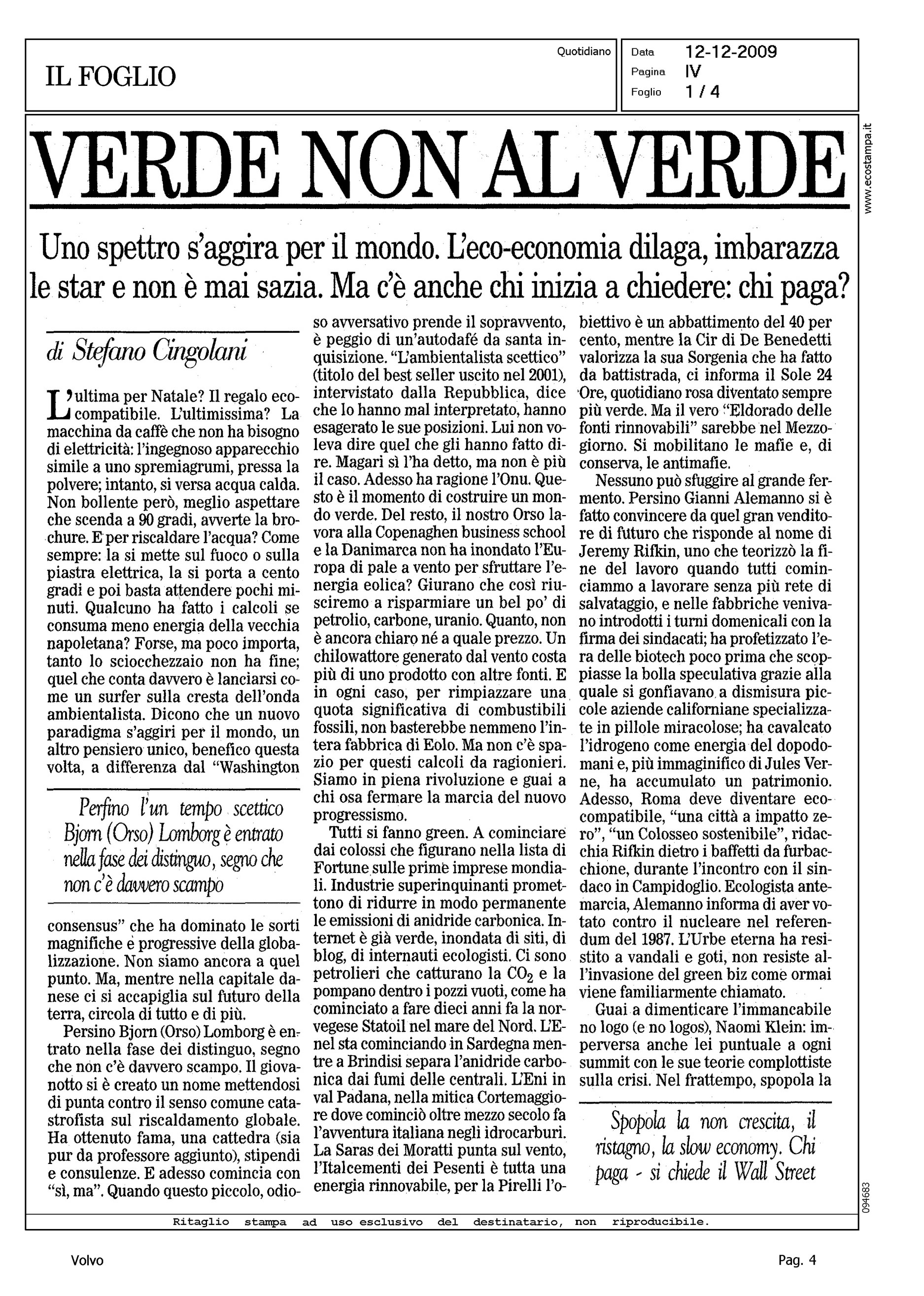 Author: CINGOLANI, STEFANOLine: Corporate Model: Corporate Subject: - Title: VERDE NON AL VERDEHighlight: CITAZIONE