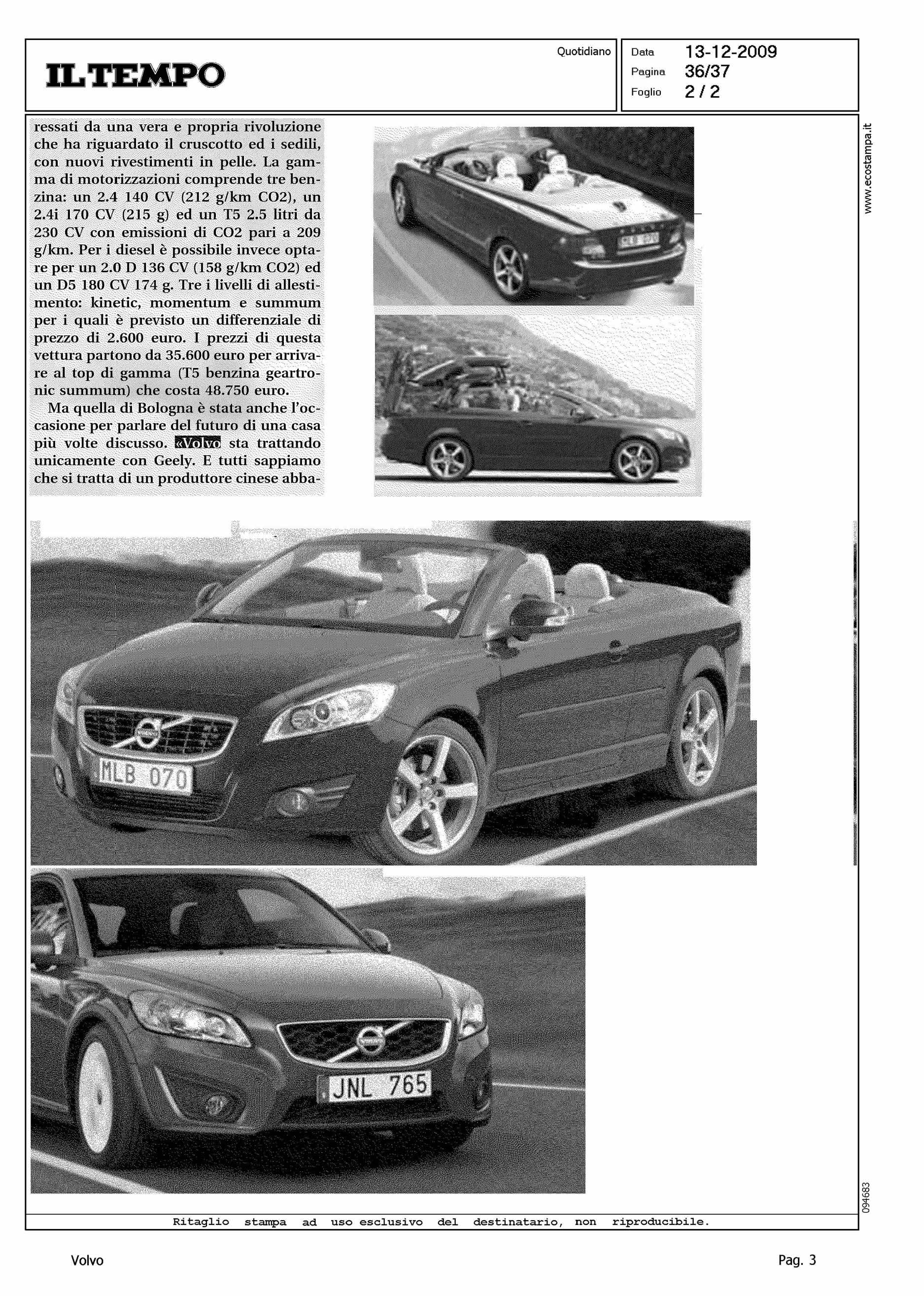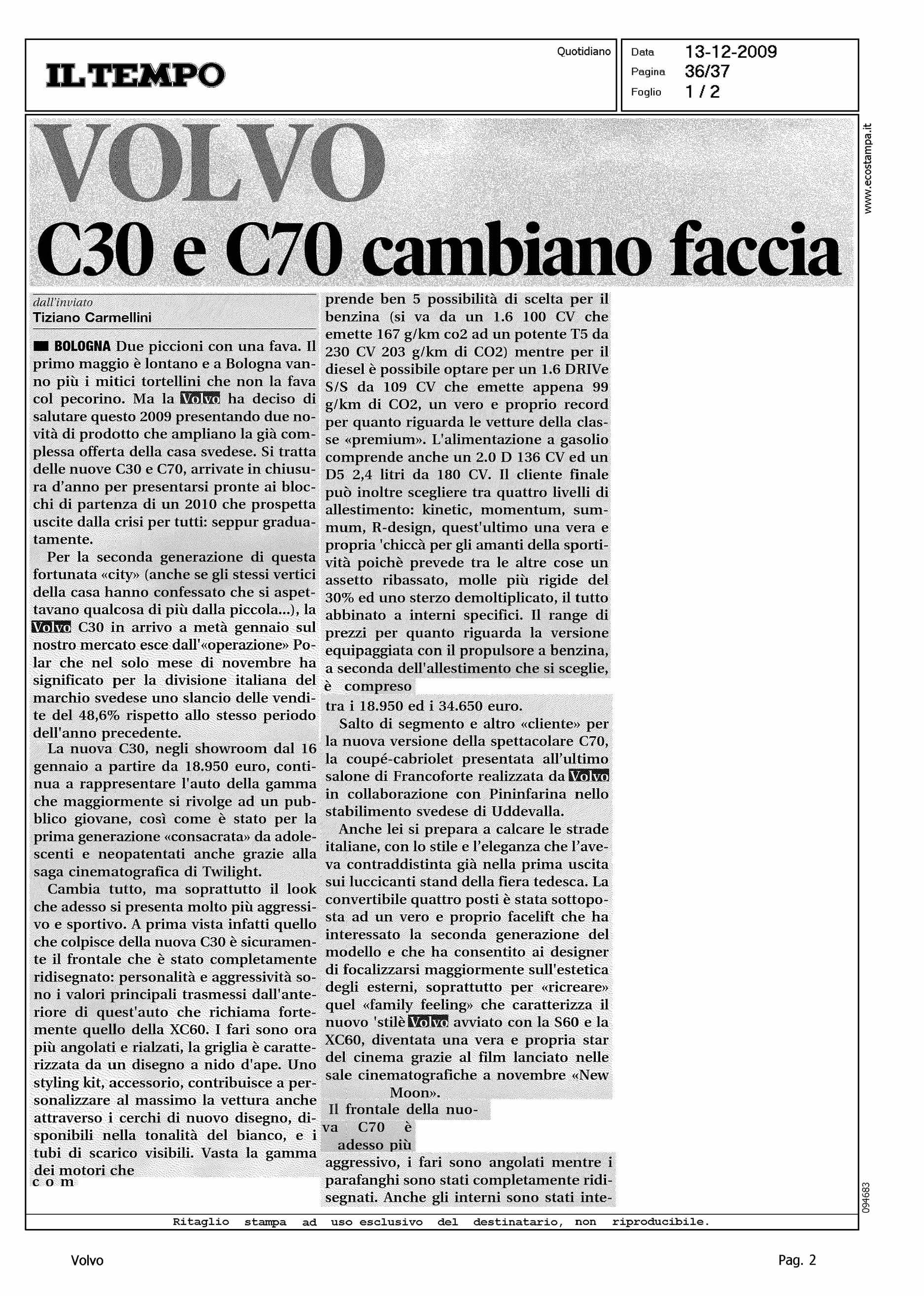 Author: CARMELLINI, TIZIANOLine: Corporate Model: Corporate Subject: - Title: VOLVO - C30 E C70 CAMBIANO FACCIAHighlight: MERCATO PER VAI - PREZZO - DESIGN - MOTORE - EMISSIONI - PER ENTRAMBI I MODELLI