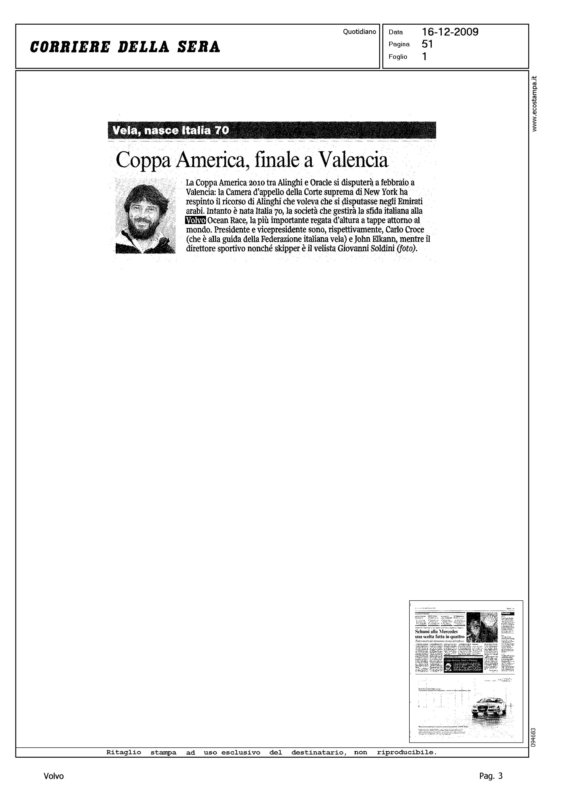 Author: Line: Corporate Model: Corporate Subject: Volvo Ocean Race Title: VELA, NASCE ITALIA 70 - COPPA AMERICA, FINALE A VALENCIAHighlight: ITALIA 70