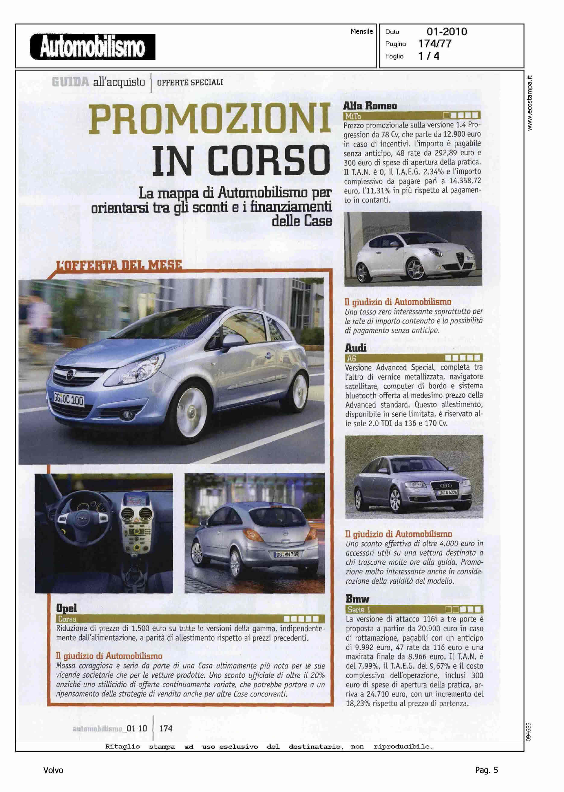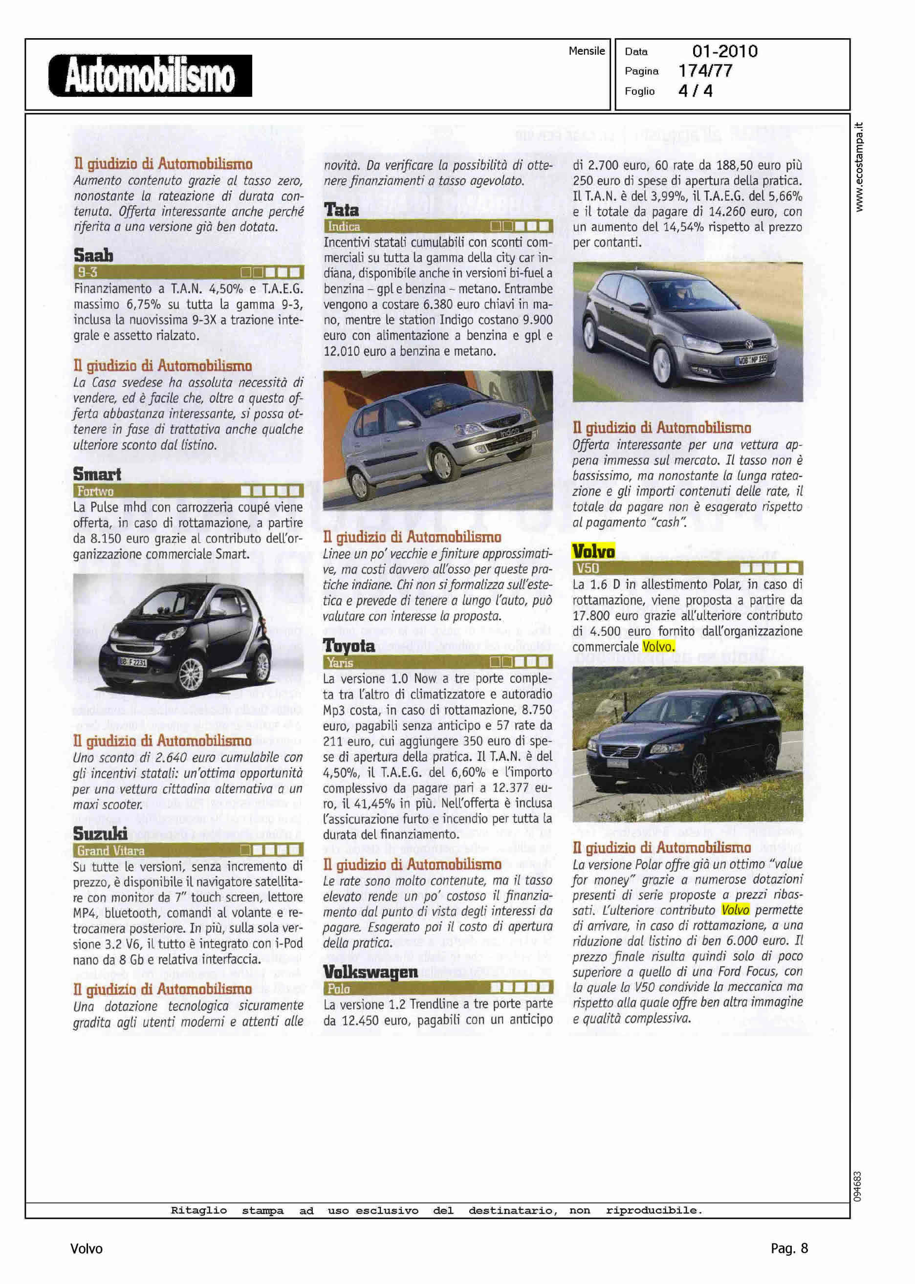 Author: Line: Corporate Model: Volvo S40 - V50 Subject: - Title: PROMOZIONI IN CORSO - VOLVO V50 - POLARHighlight: PREZZO - GIUDIZIO DI AUTOMOBILISMO - ROTTAMAZIONE, PREZZO - COMPARAZIONE CON F. FOCUS - MECCANICA - IMMAGINE