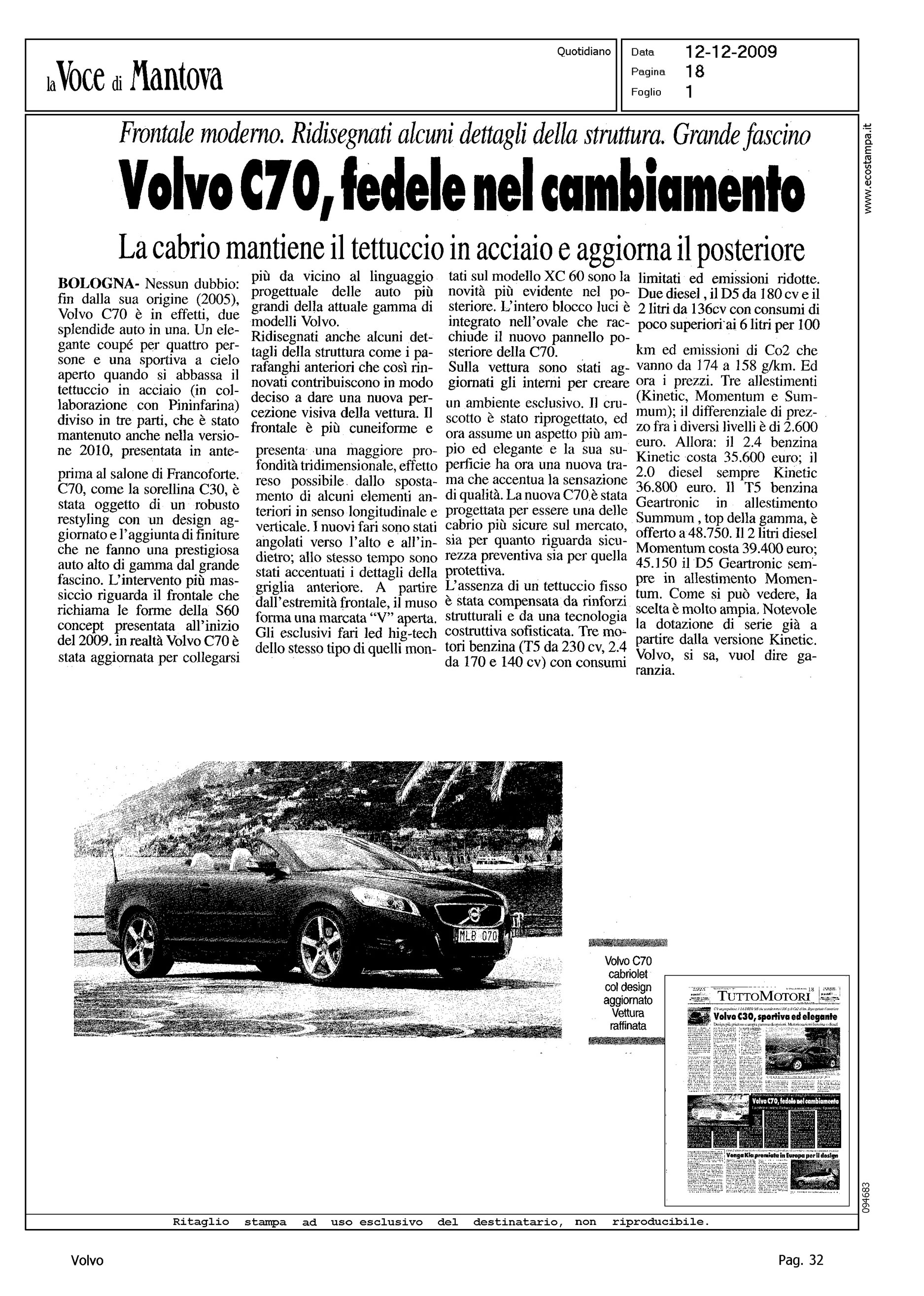 Title: VOLVO C70, FEDELE NEL CAMBIAMENTO