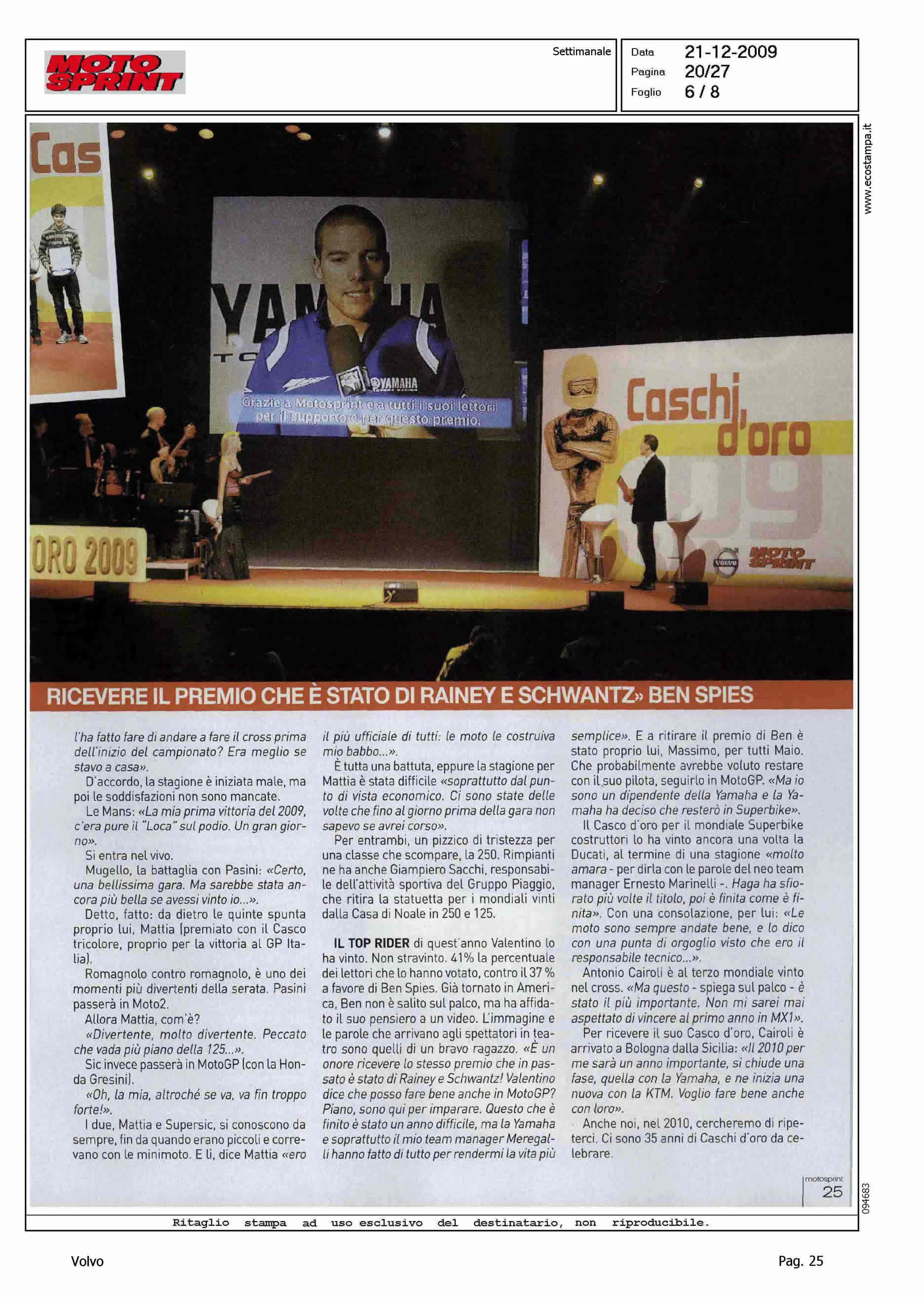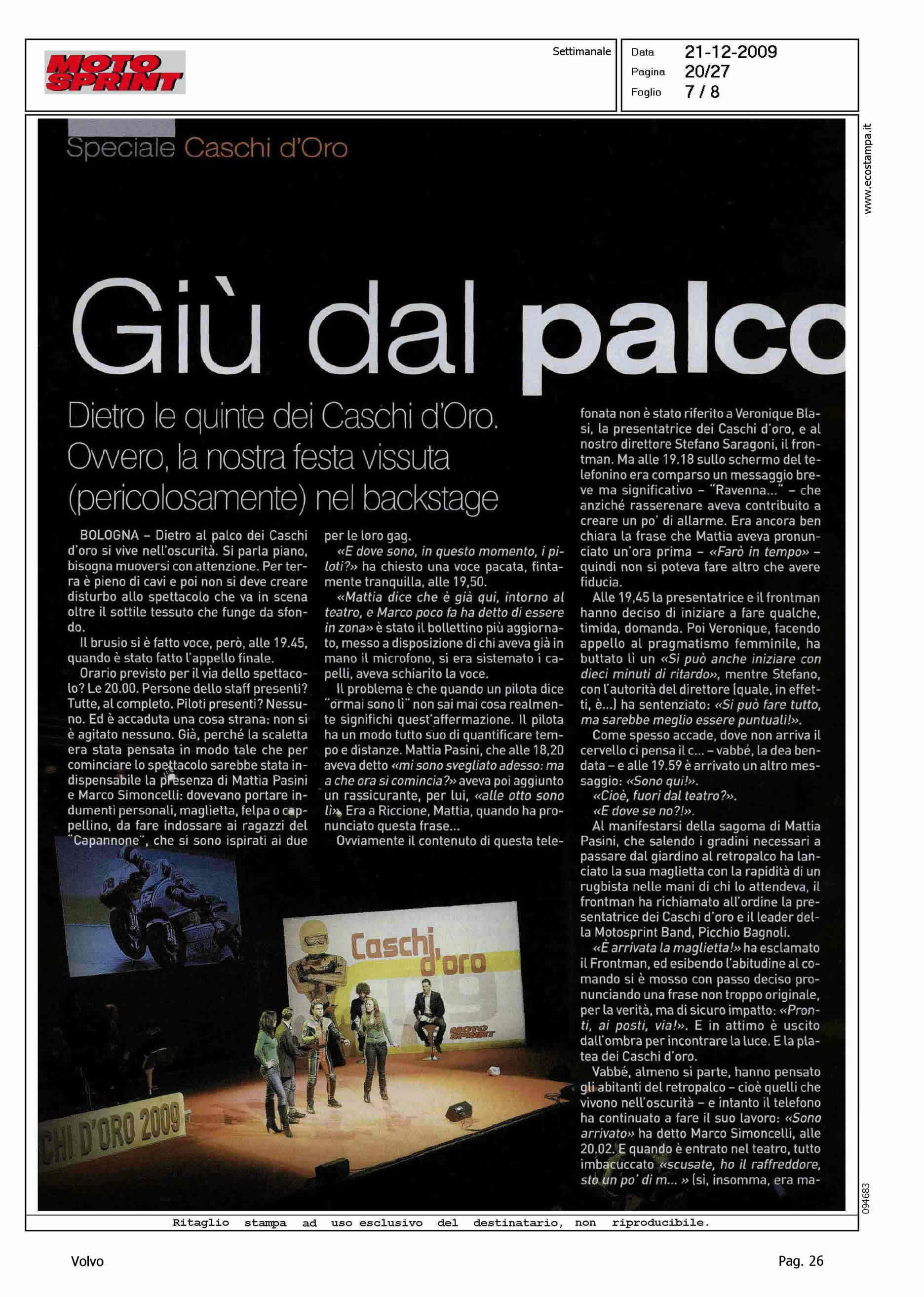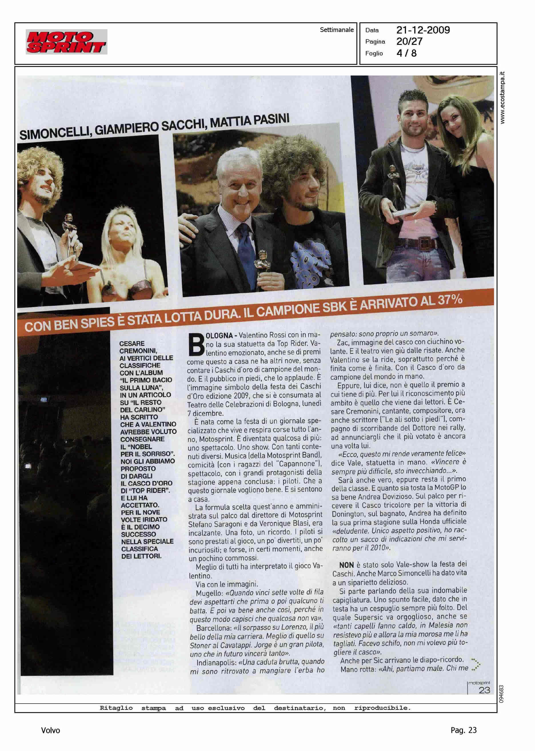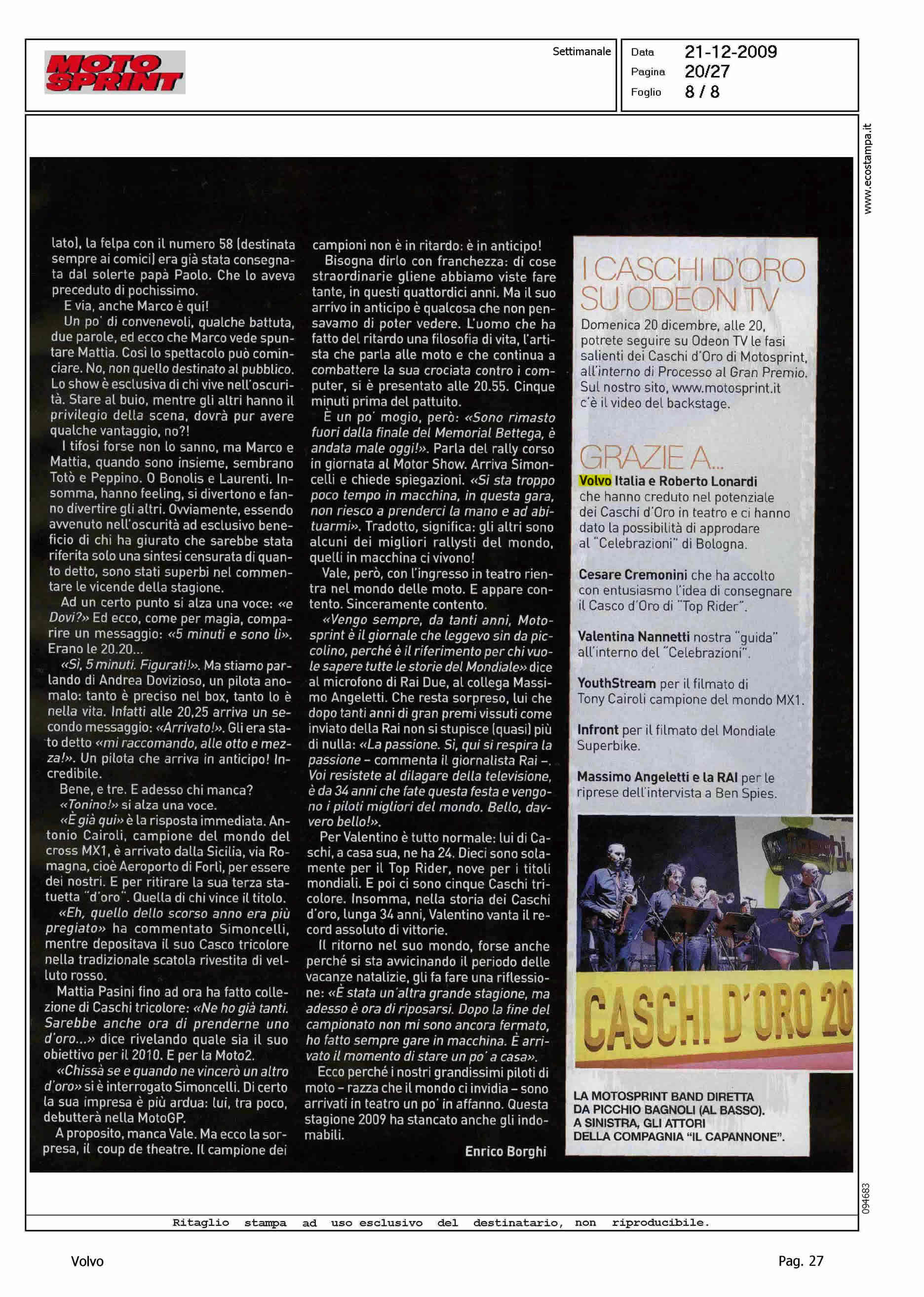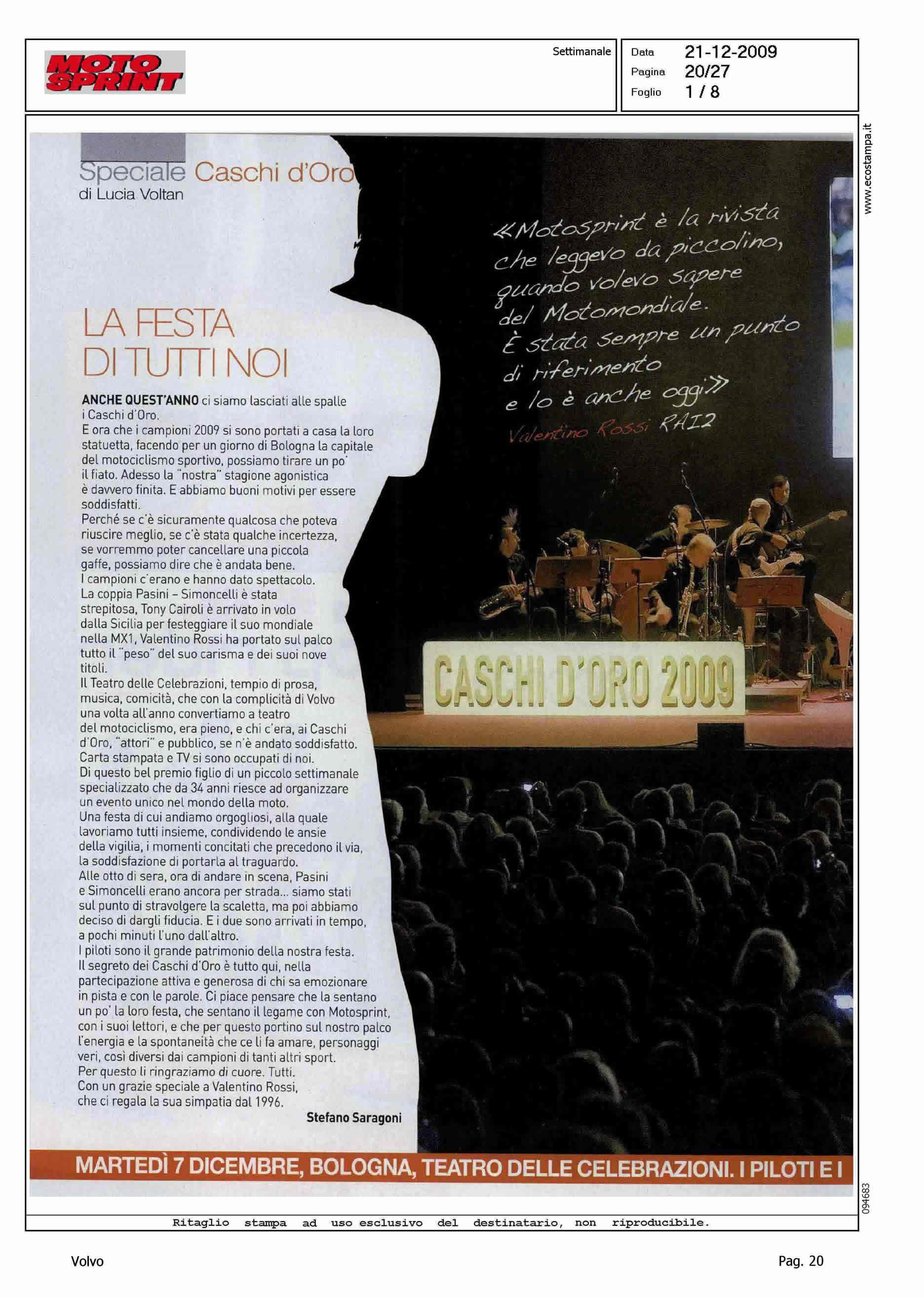 Highlight: ARTICOLO DATA 21.12 IN EDICOLA 14.12 - FESTA CASCHI D'ORO MOTOSPRINT - SUPPORTO VOLVO ITALIA